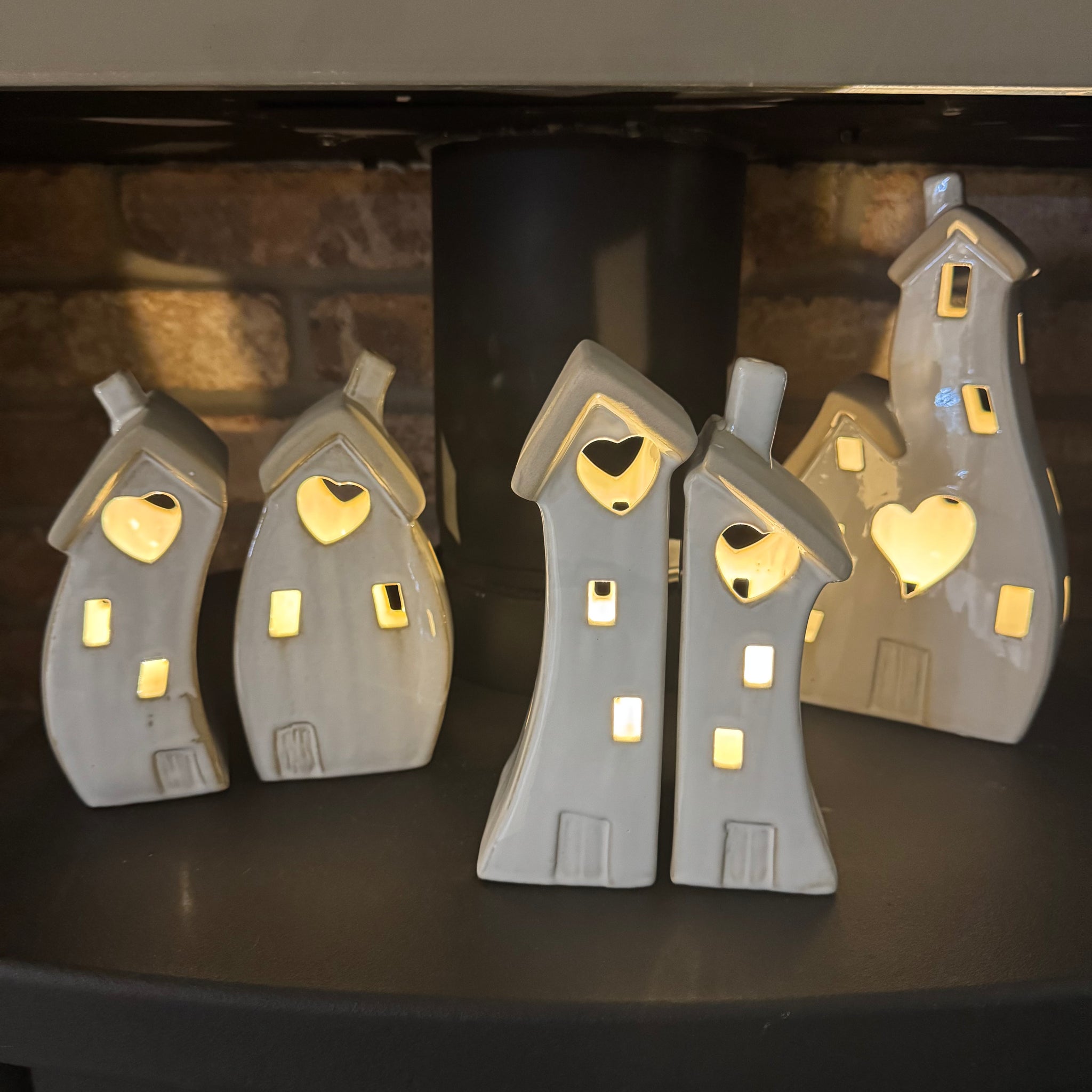 Stone Glazed Ceramic Light up Houses with heart detail