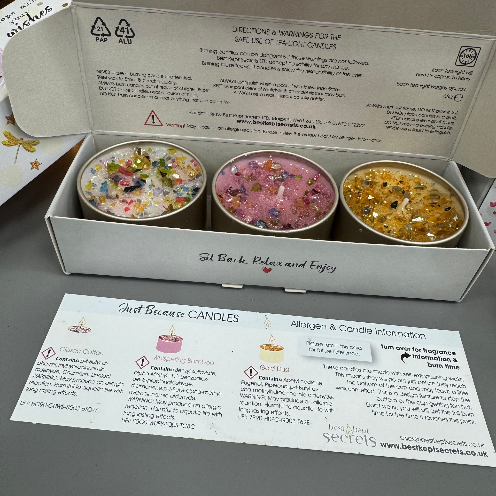 Just Because 3 Lites Collection - 3 fragrances with sprinkles of glitter & tiny gems for that pretty finishing touch..