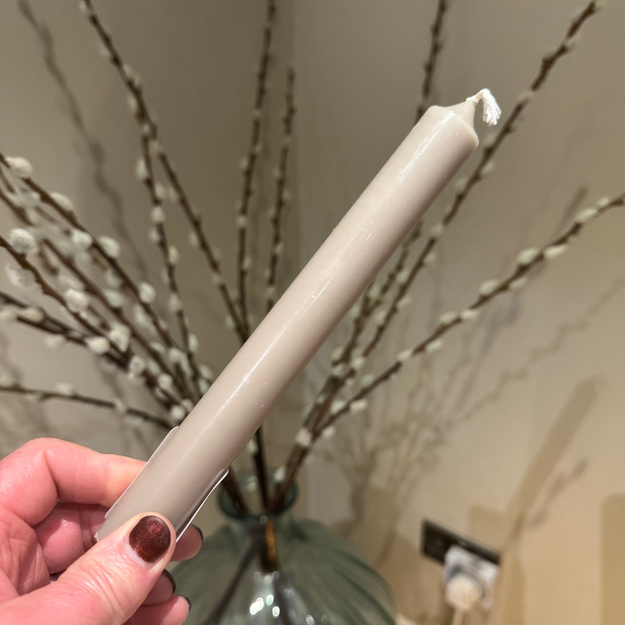 The classic taupe candles instantly gives you comfort and rest. With their natural tone and velvet appearance, these long candles decline subtle earthy shades. Tinged mass, these cylindrical candles would gladly complete the warm and colourful range of an autumn decoration.