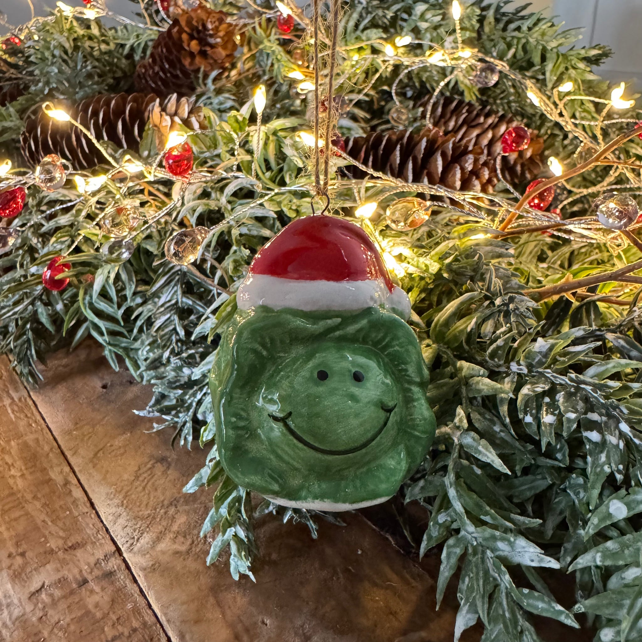 This family of fun hanging ceramic decorations keeps growing - can you spot the new ones? sprout, carrot, peas in pod, broccoli, cabbage, corn on the cob, parsnip, pig in blanket, potato, clive cranberry sauce, christmas cake, pudding...