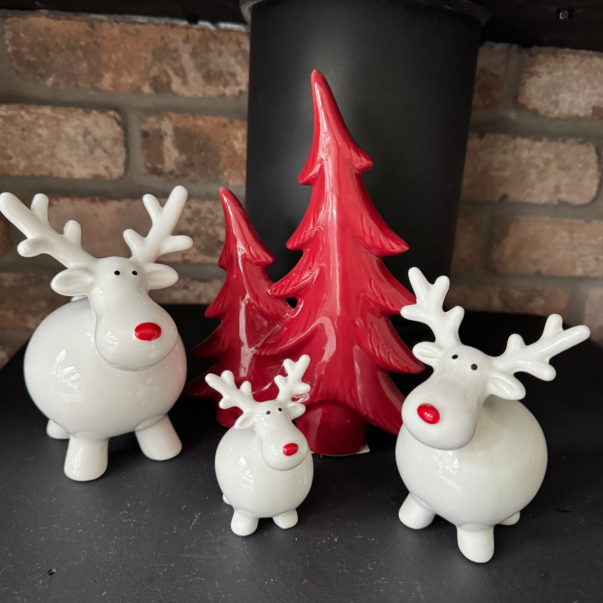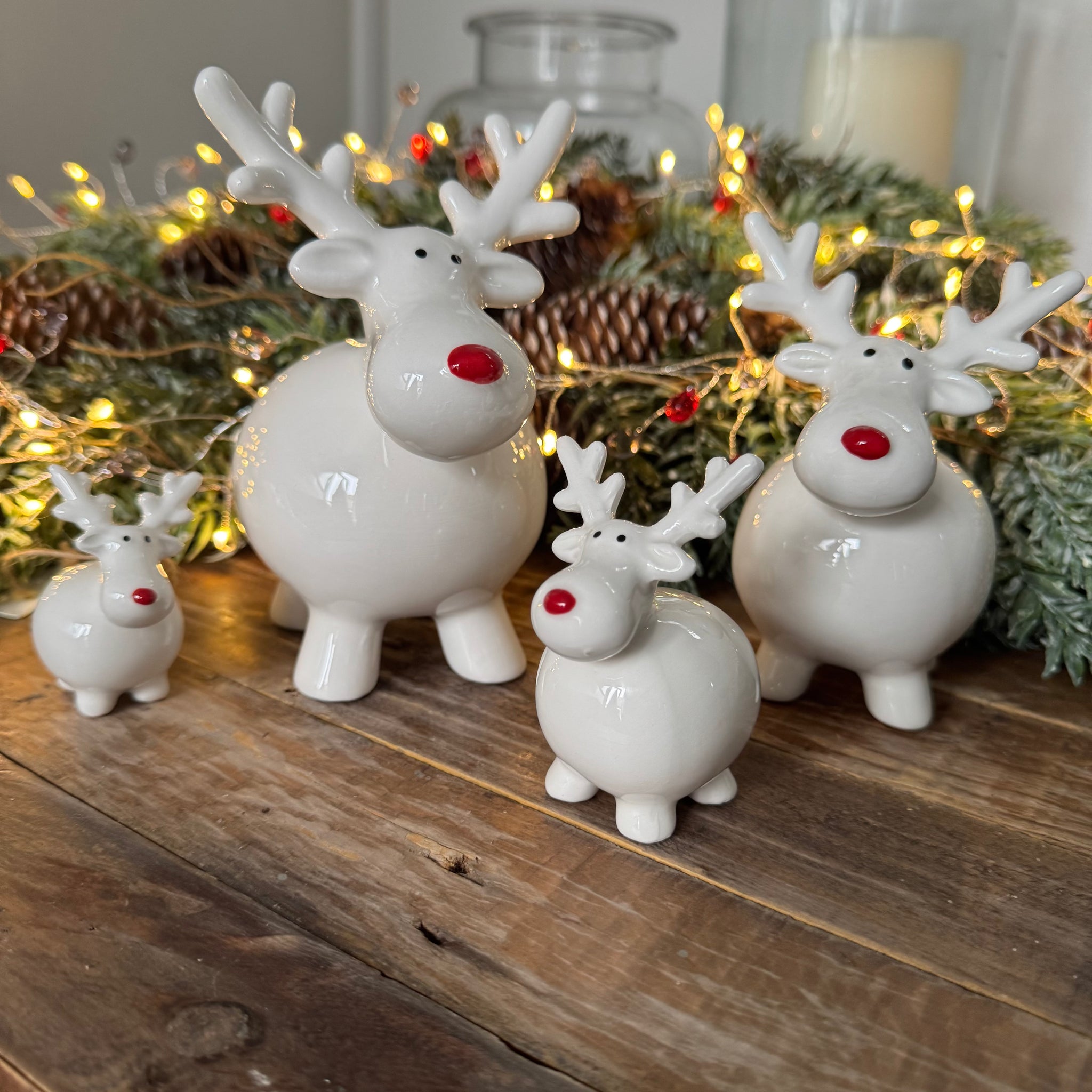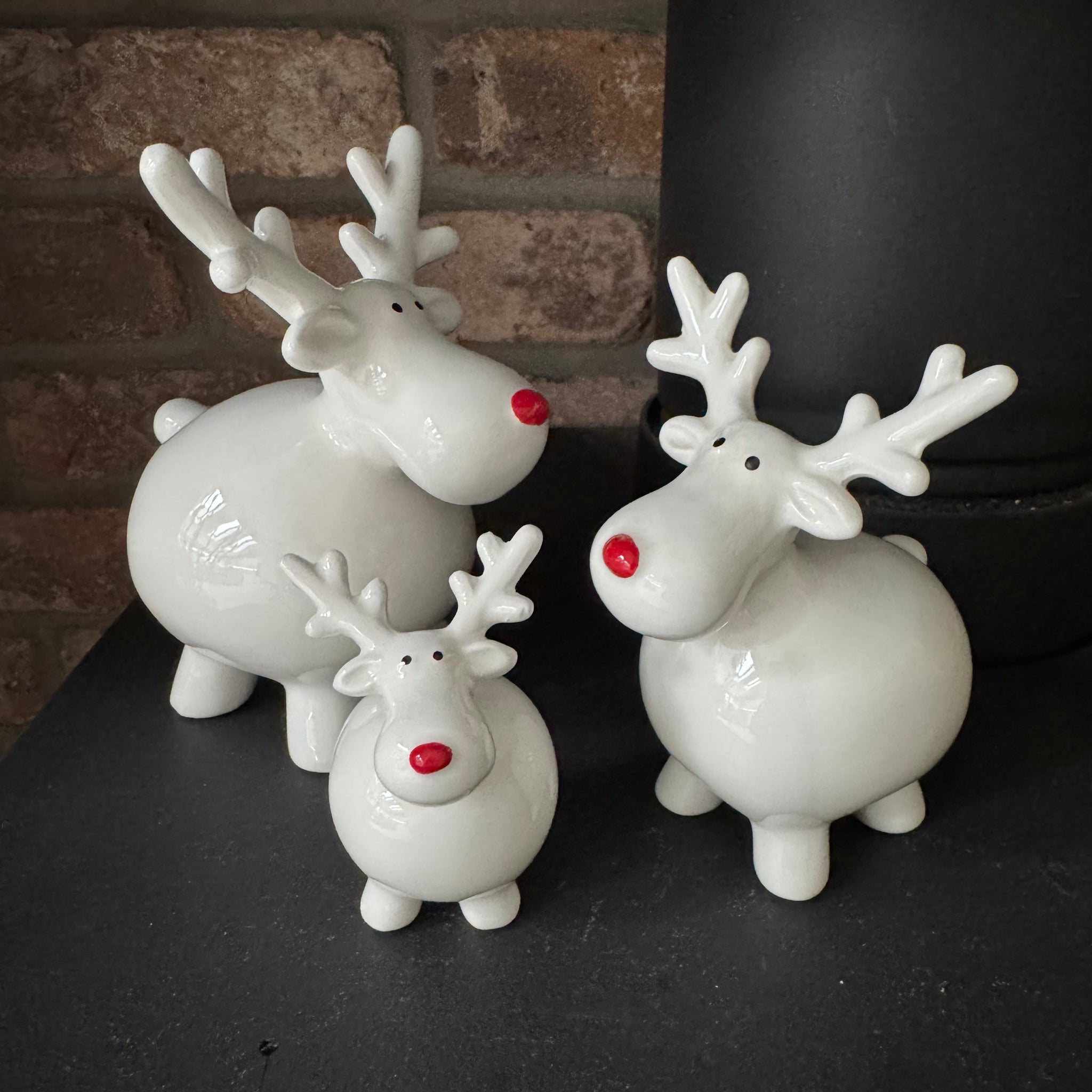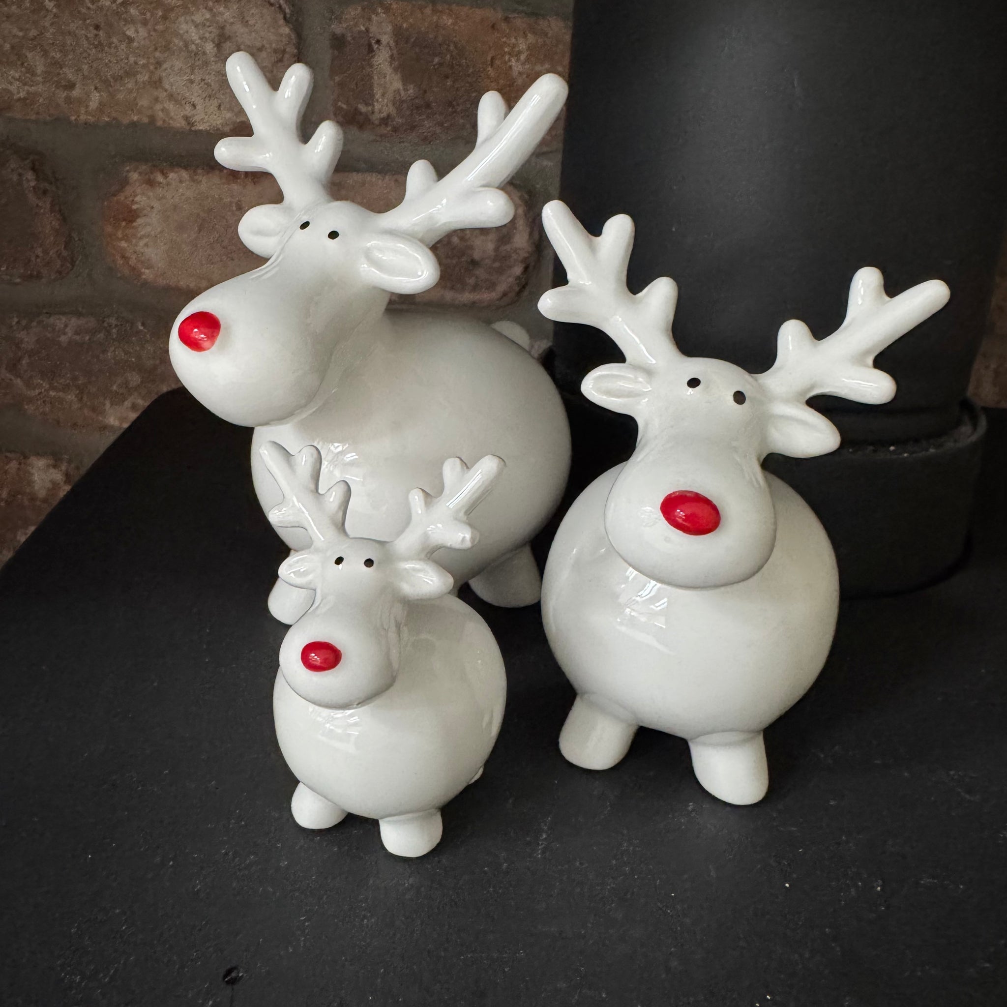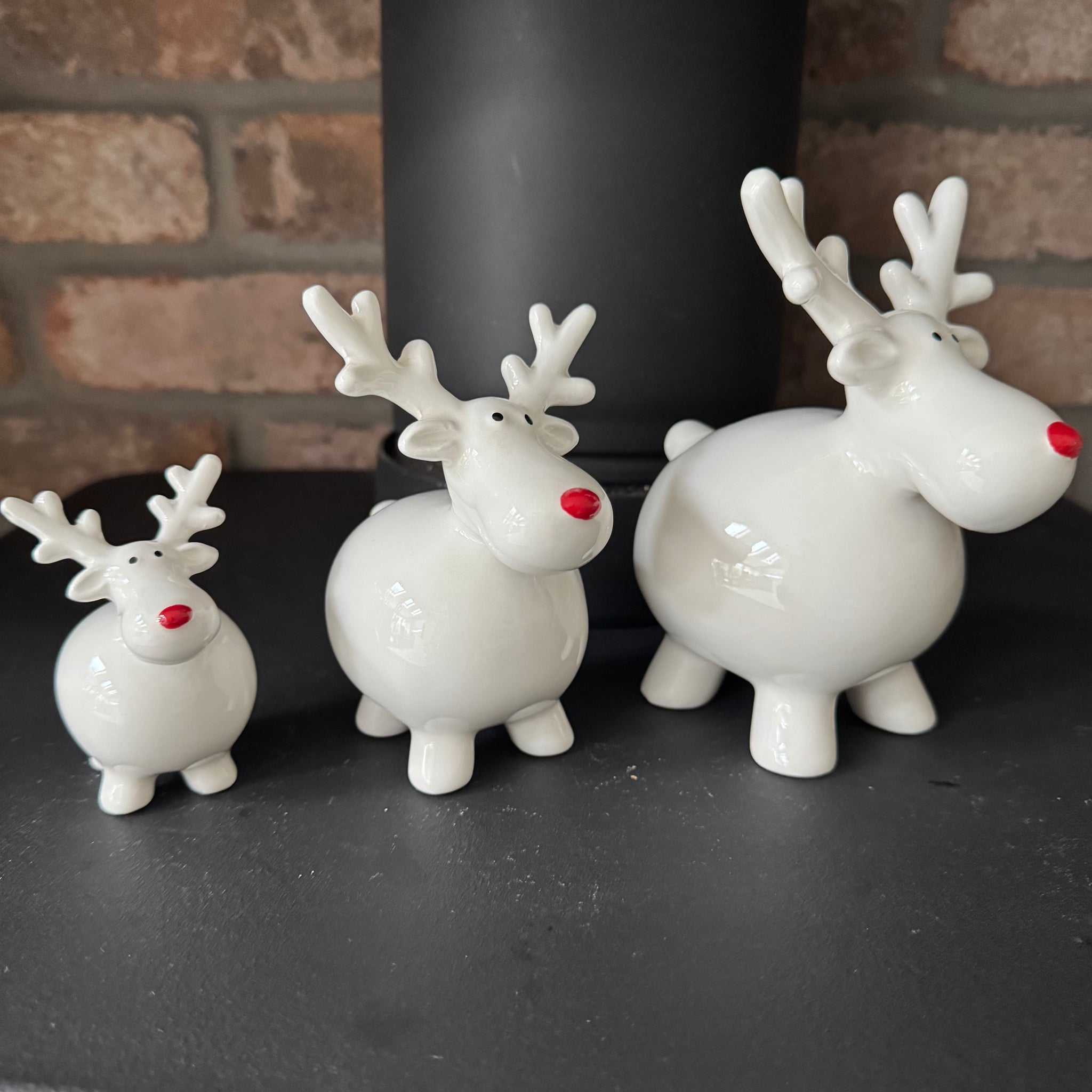 Ceramic White Fat Reindeer with Red nose - 3 Sizes