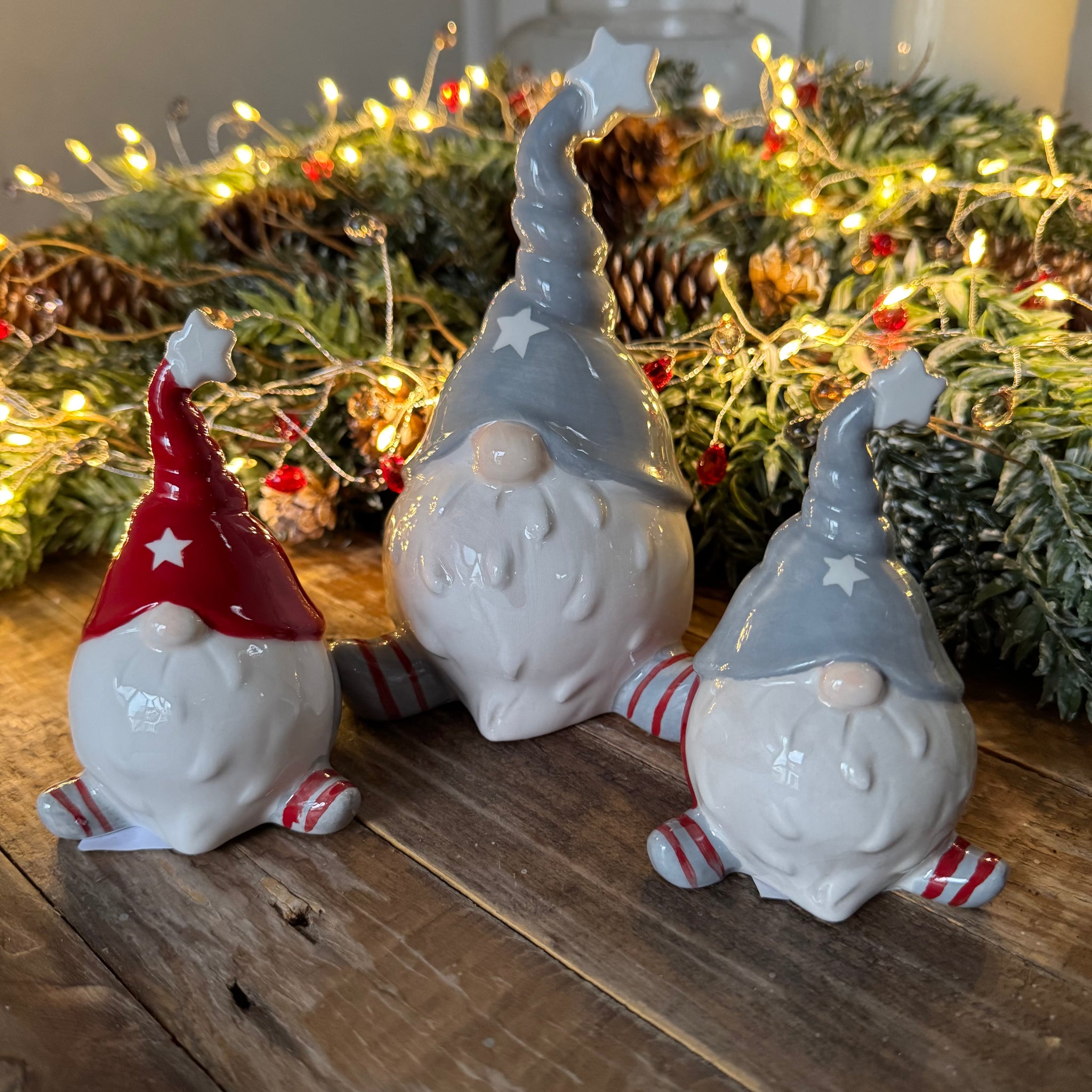 An adorable ceramic gonk ornament with a unique twisted hat, textured beard and star motif. He is sure to add a touch of christmas charm to your home this year.