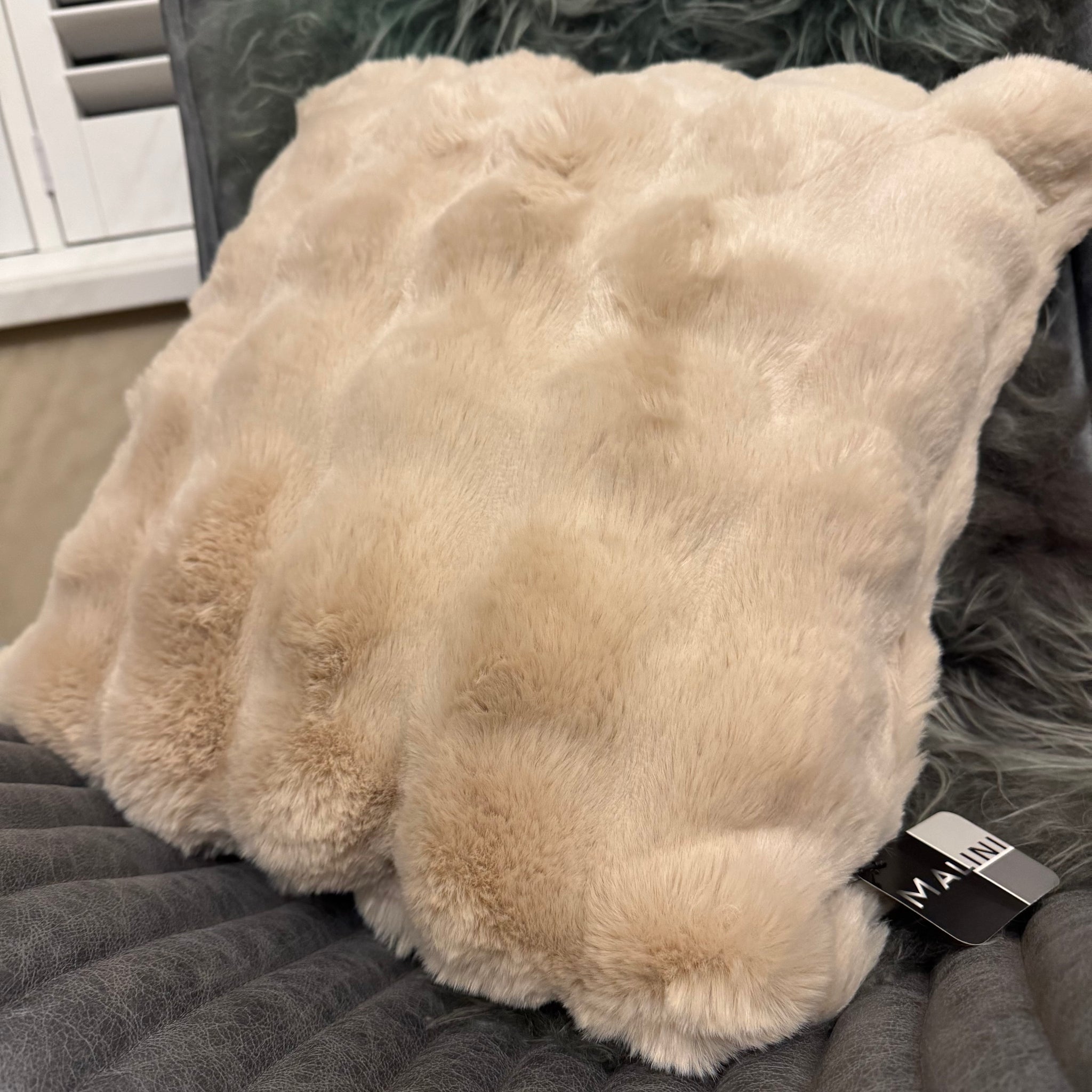 Indulge yourself with these soft and luxurious quality faux rabbit cushion with square textured finish.
