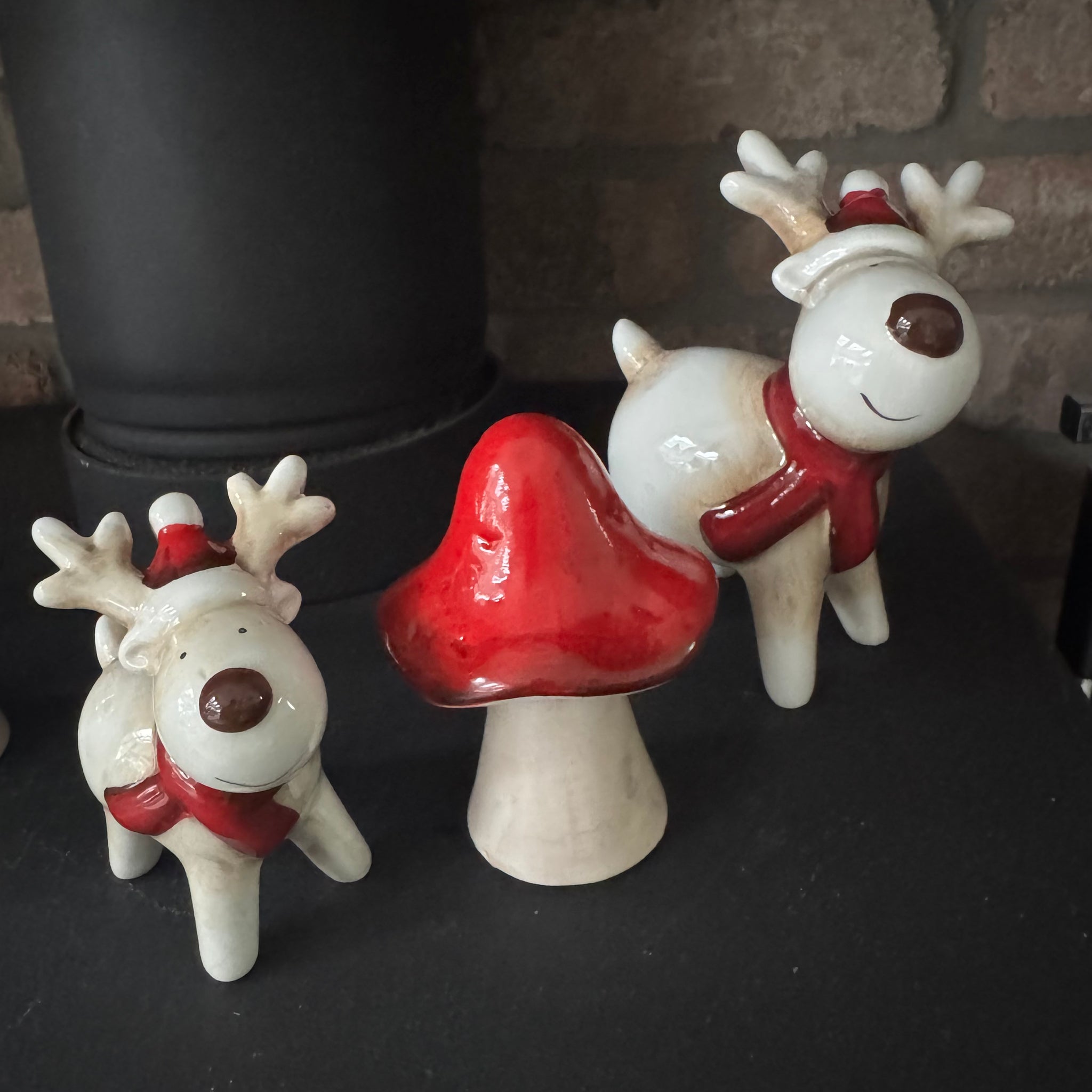 Ceramic mushrooms decoration in a red glaze. Ideal for adding and enchanting charm to any home space.