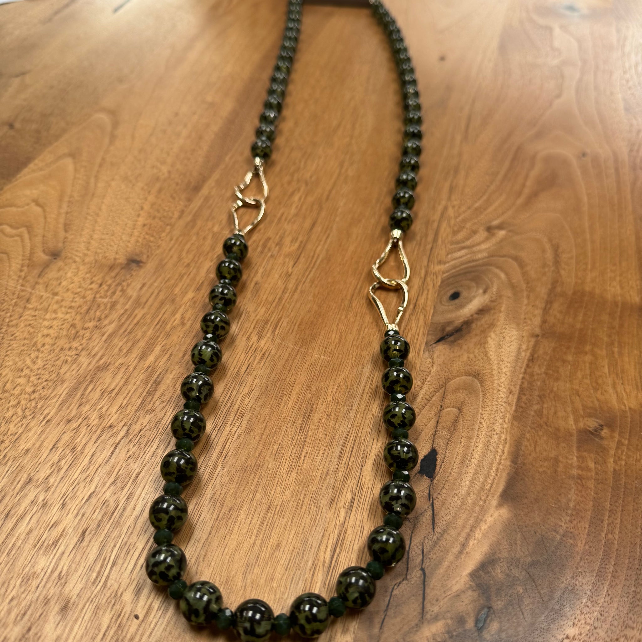 - Green leopard with a soft gold link detail