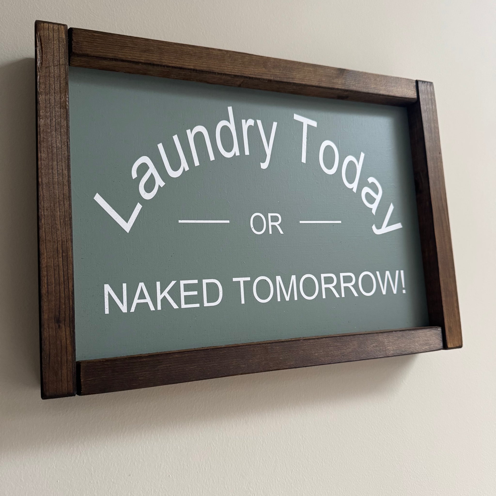 Small Rectangular Framed Duck Egg Plaque - Laundry Today or Naked Tomorrow