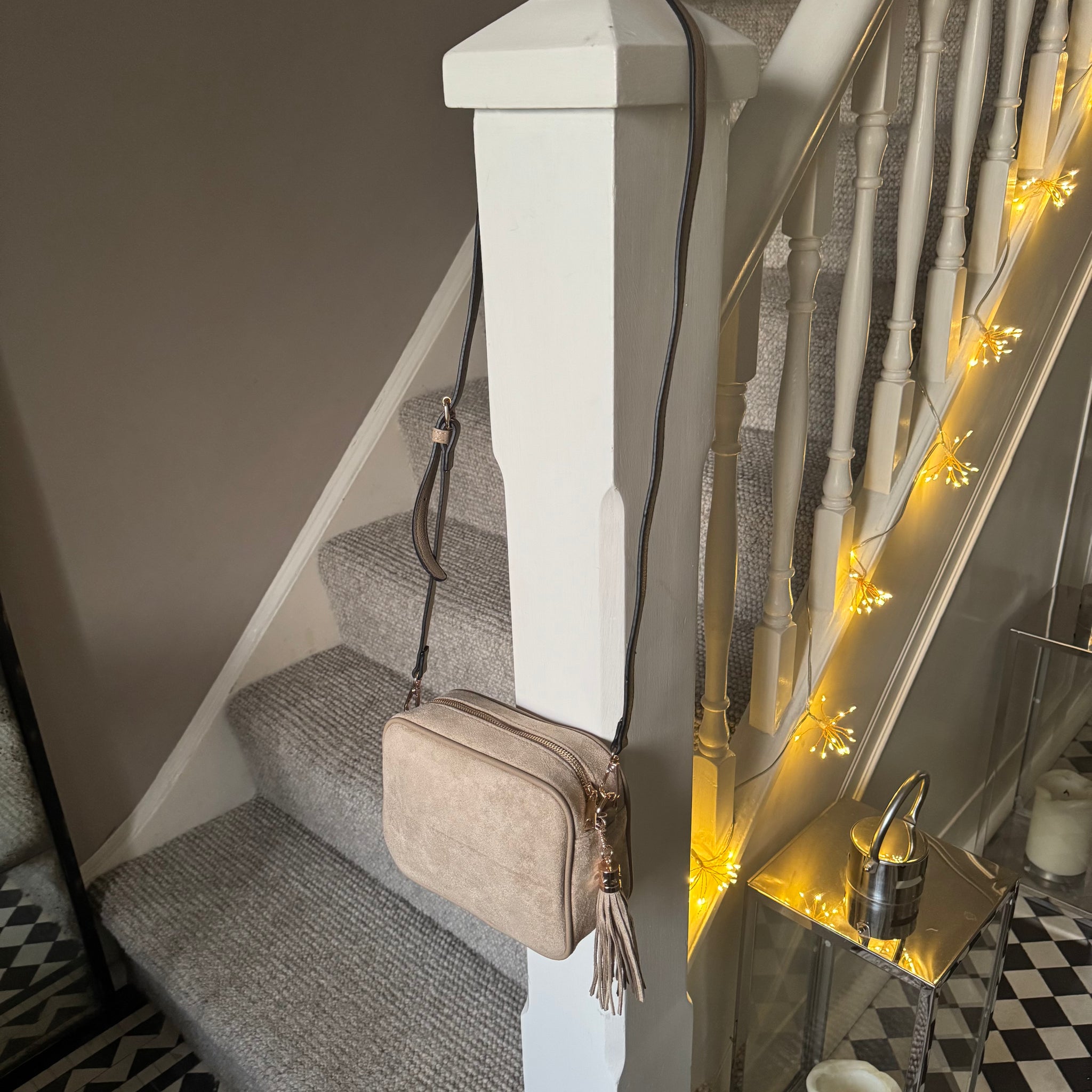 Perfect versatile & timeless body bag in a soft faux suede, adjustable & detachable long strap with a designer look in a high quality.