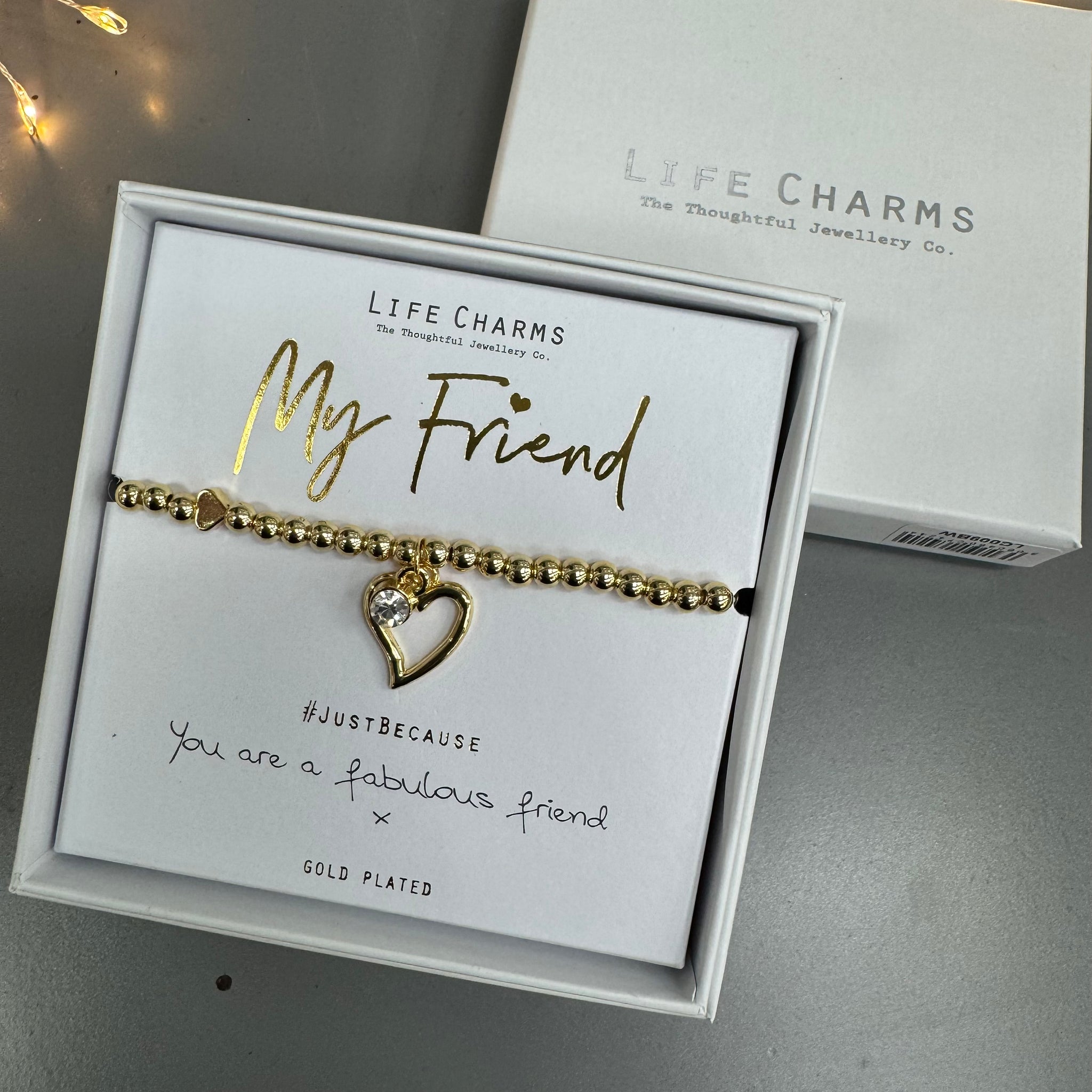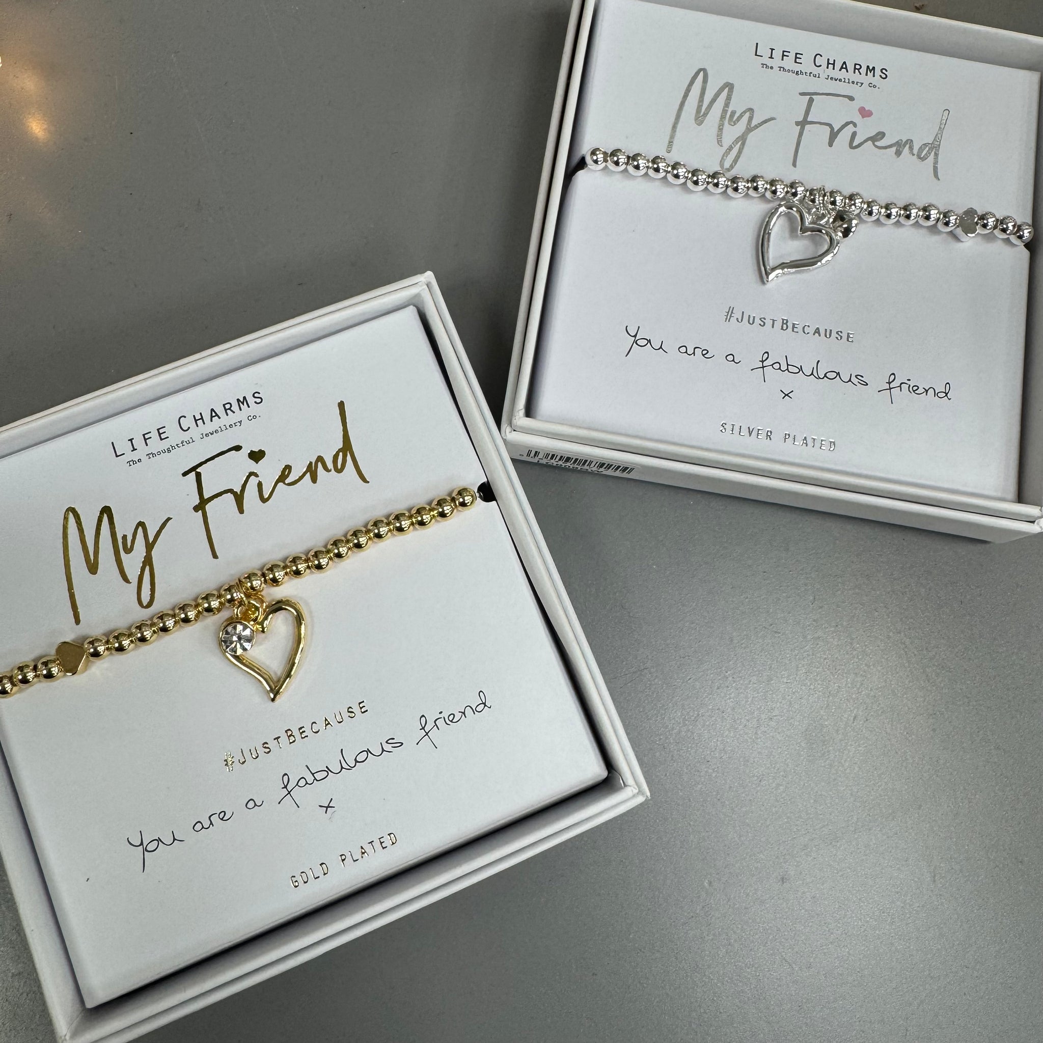 - The bracelet comes presented in a luxury gift box, with a Just Because card with the quote displayed - You are a fabulous friend