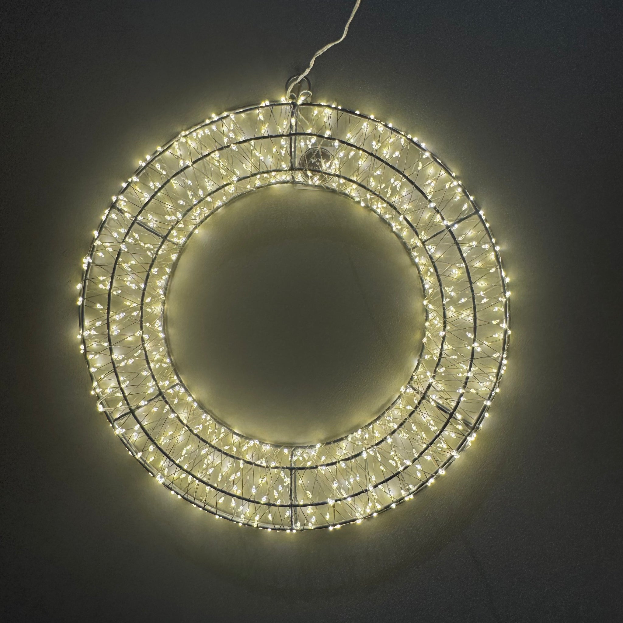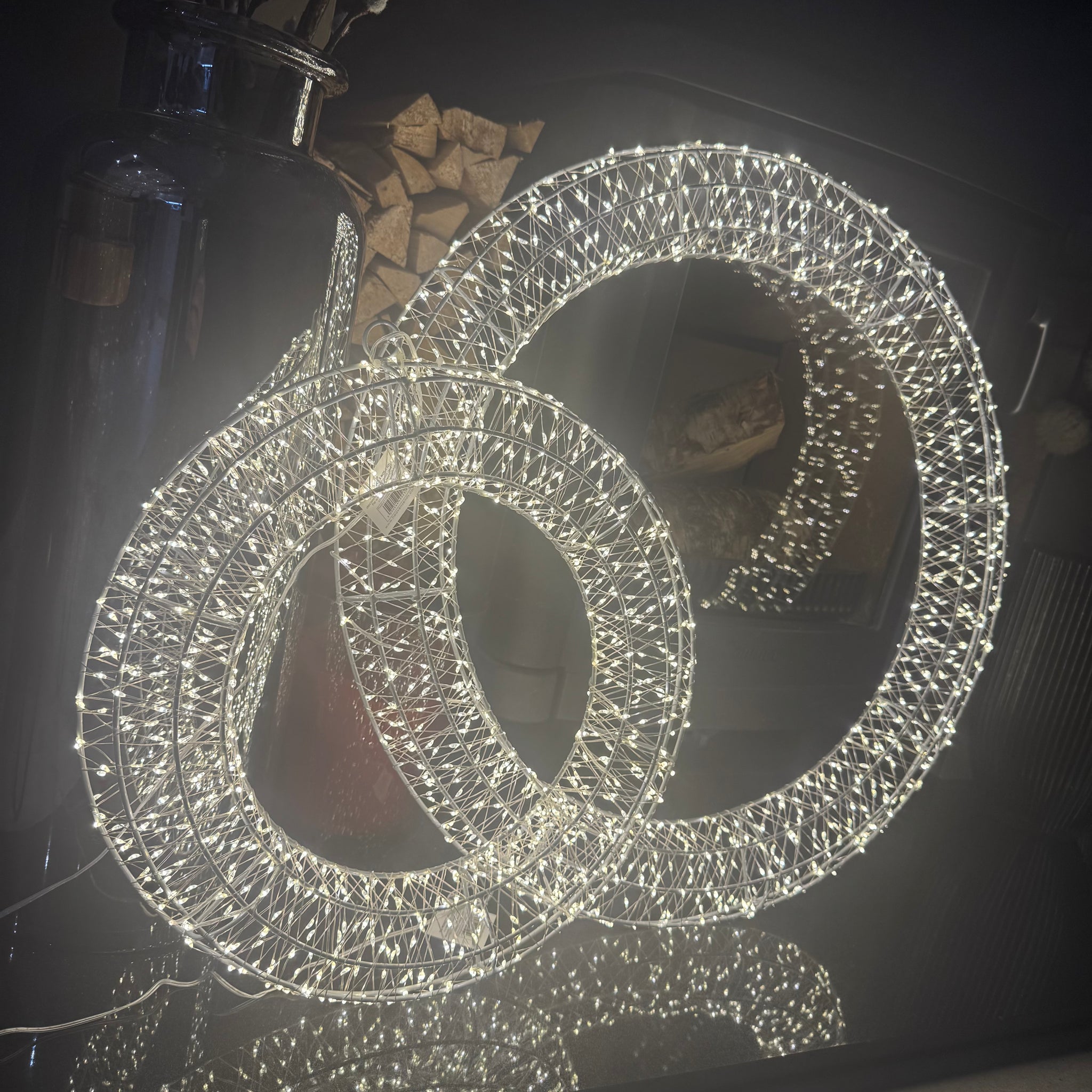 Most stylish & modern ring 40cm in diameter and 5cm in depth with a metal silver frame with the lights wrapped around