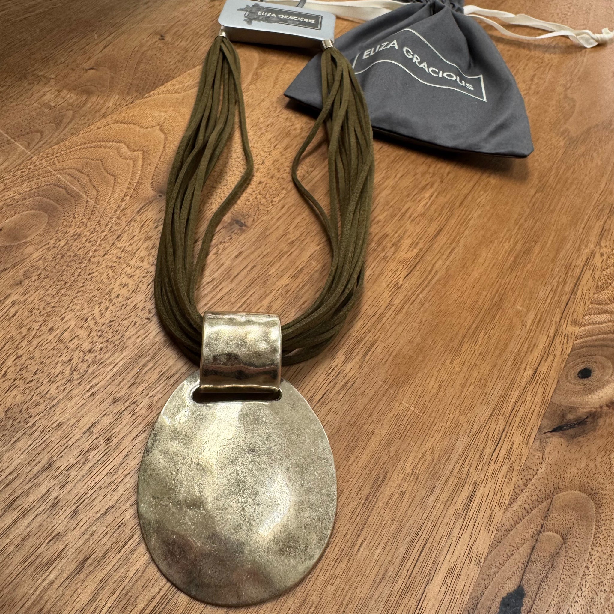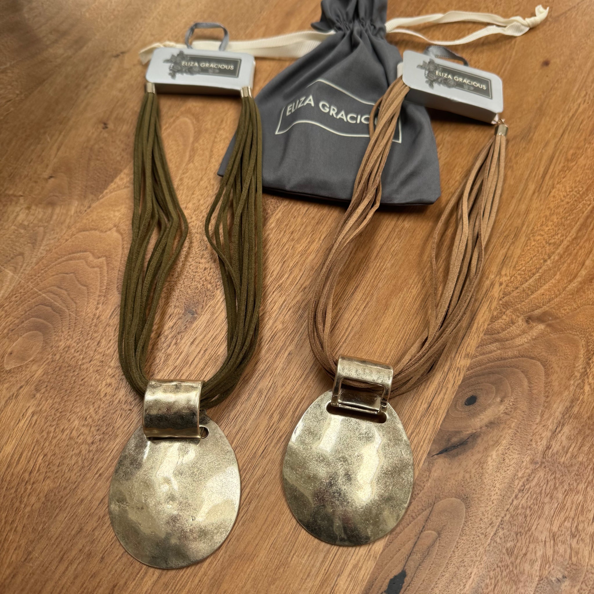 Eliza Gracious - Short multi suede with beaten disc necklace | 2 colours