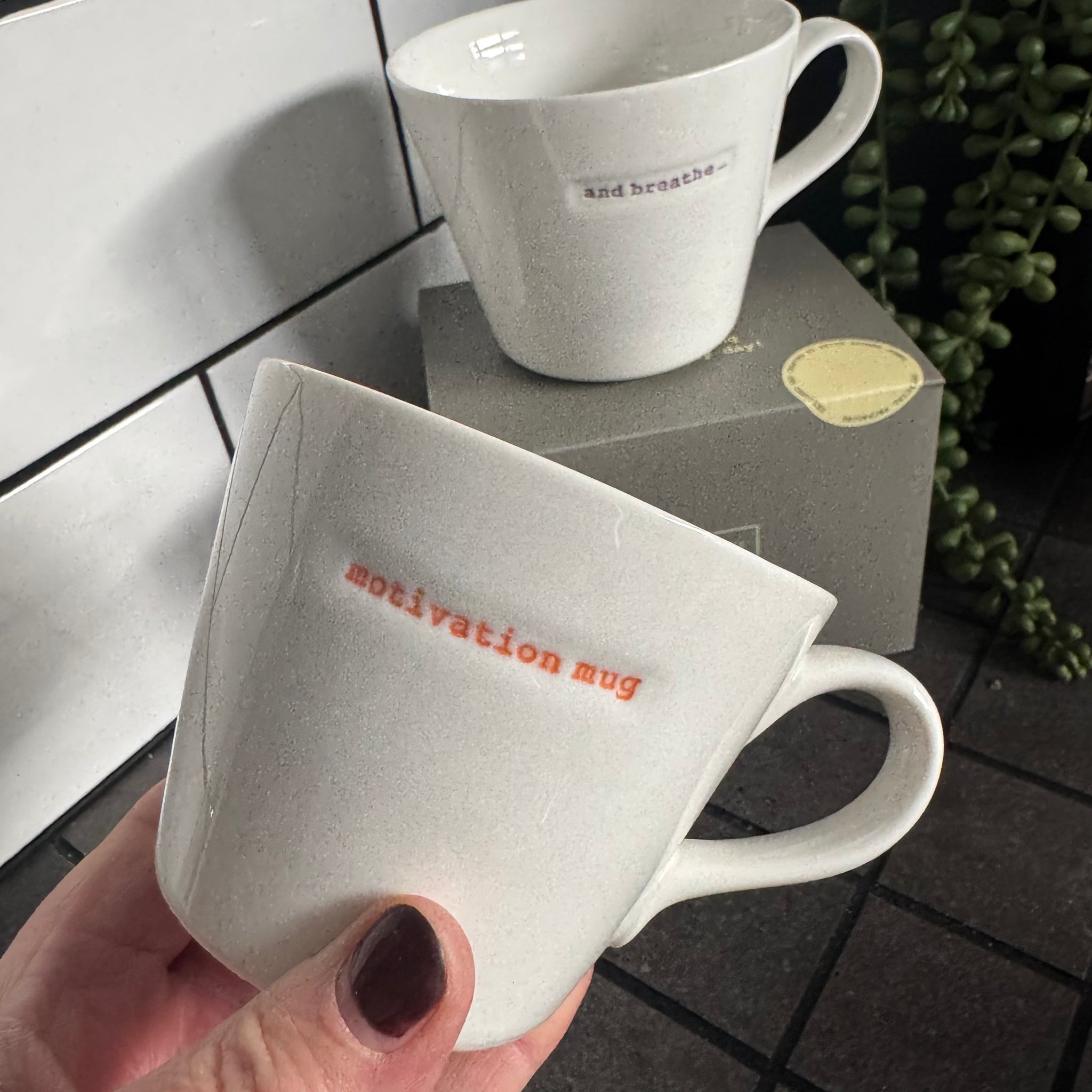 Word Range Medium Bucket White Porcelain Mug 350ml with handstamped quote