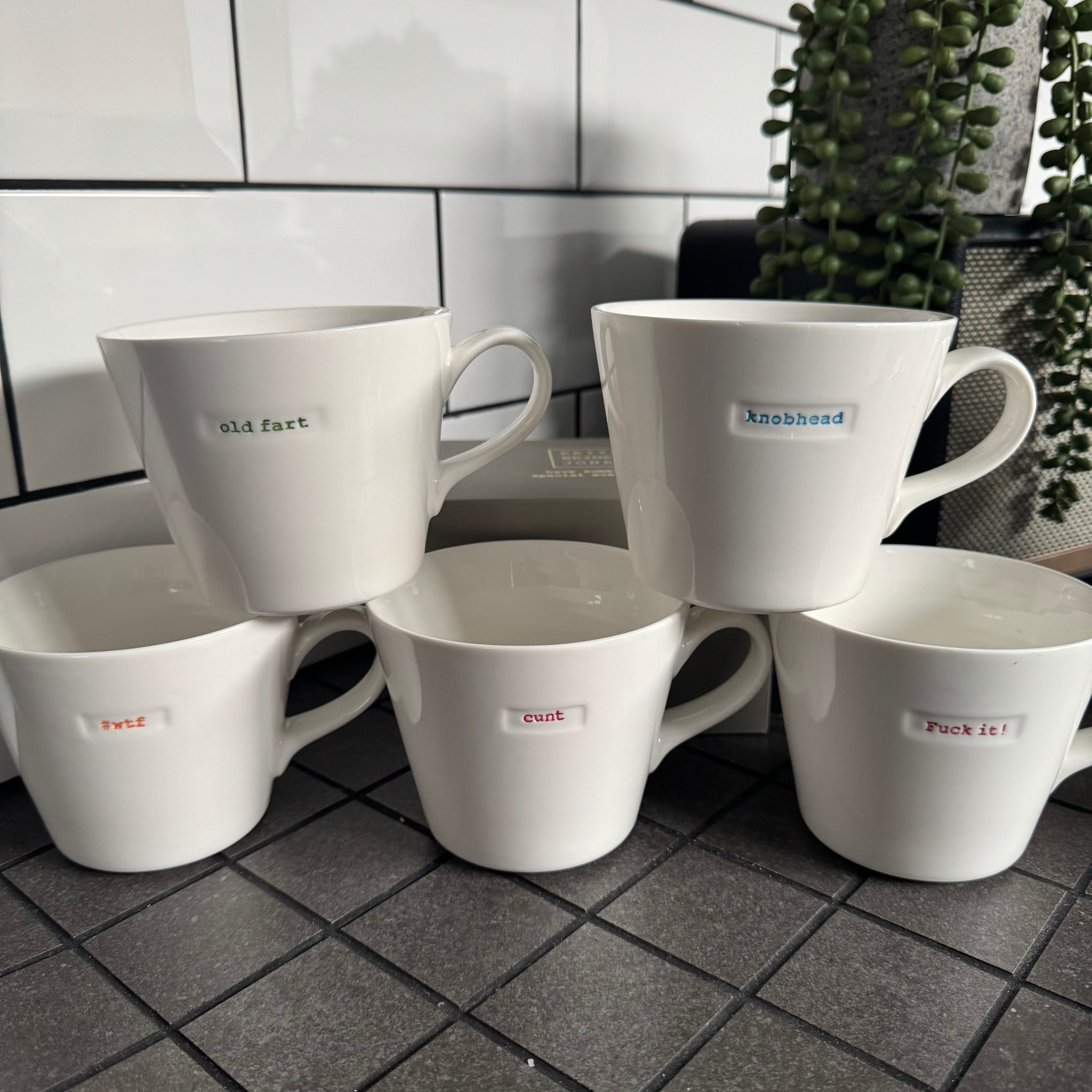 Word Range Medium Bucket White Porcelain Mug 350ml with handstamped quote