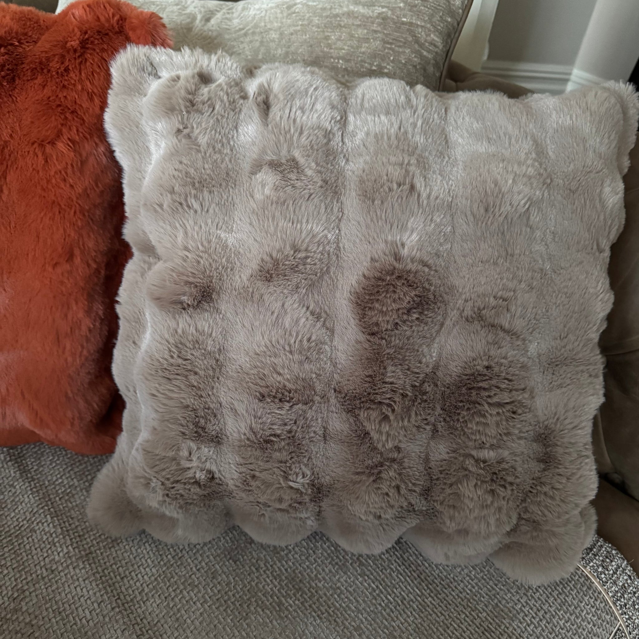 Indulge yourself with these soft and luxurious quality faux rabbit cushion with square textured finish.