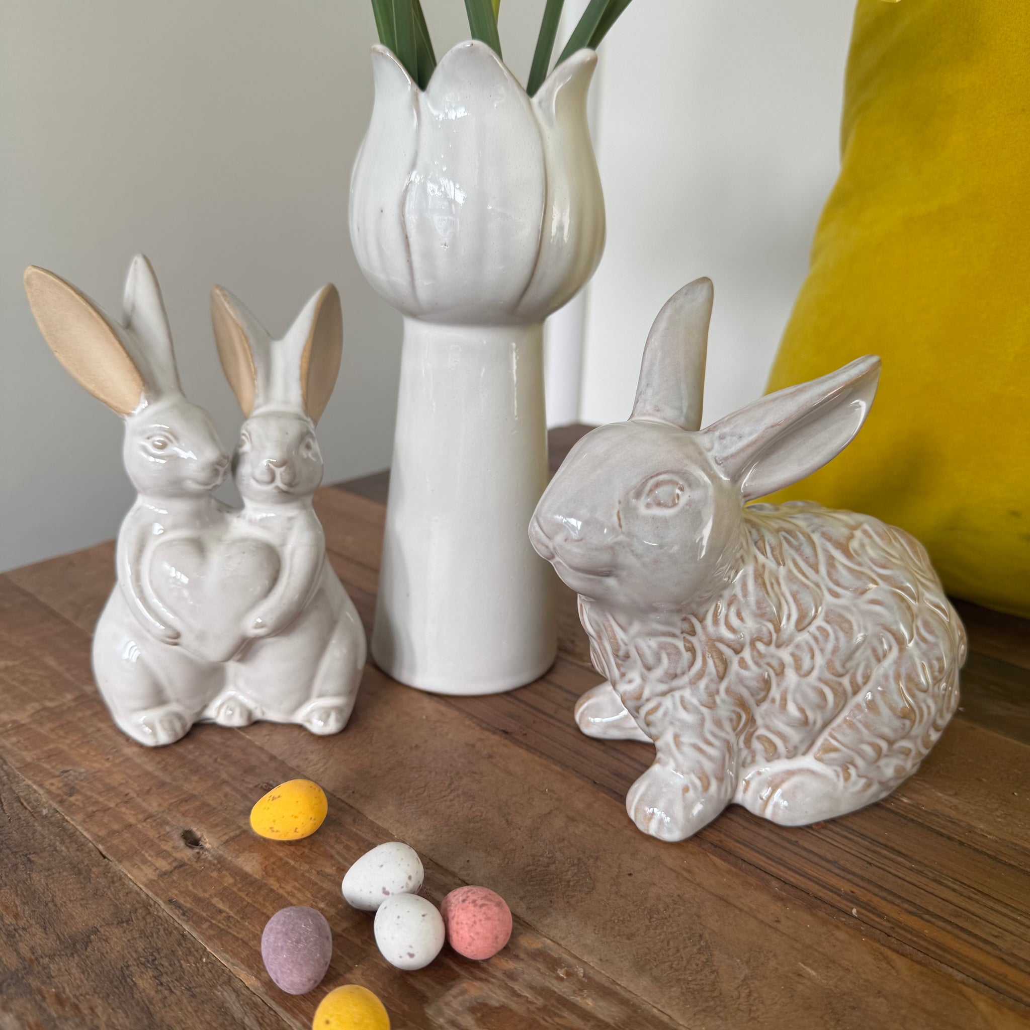 Glazed Ceramic Natural Toned Tulip Flower Shaped Vase 19.9cm