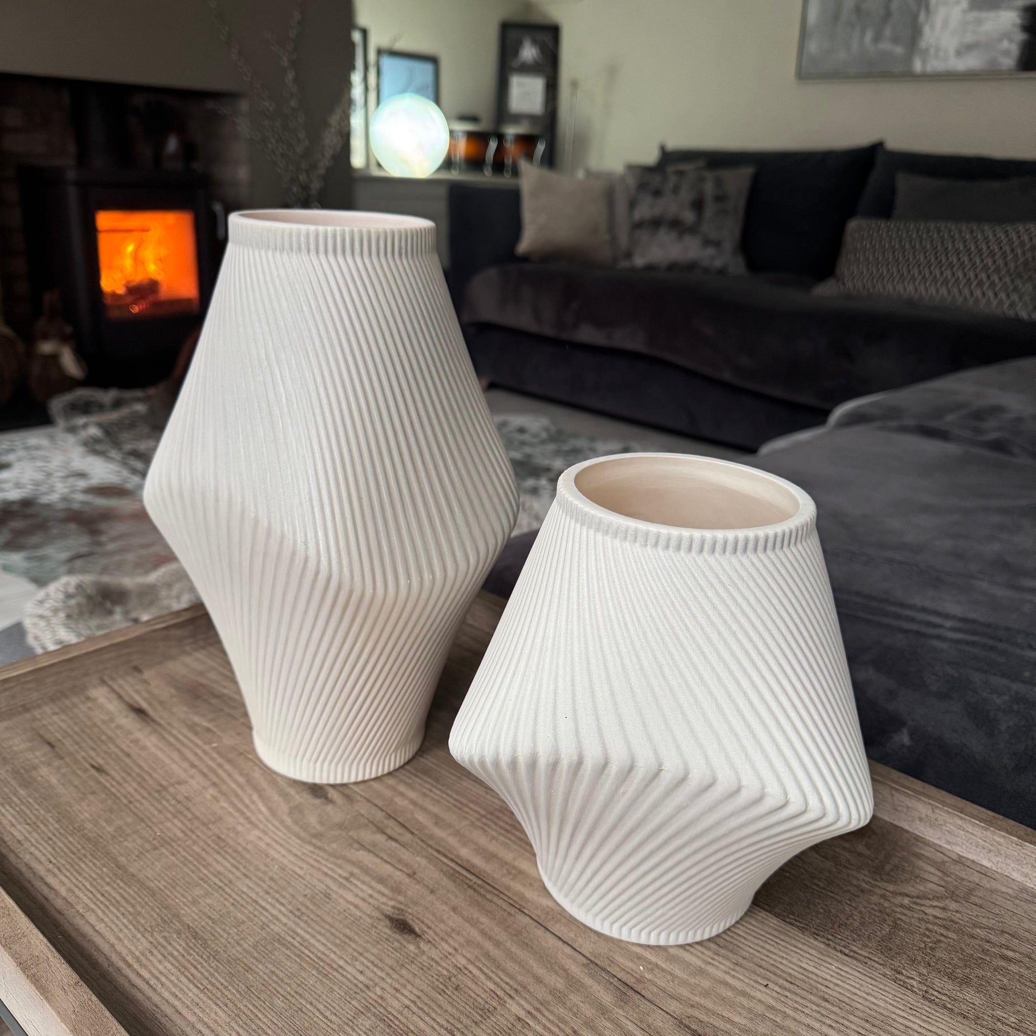 Terracotta Beige Sculptured Ribbed Twist Vase - 2 sizes