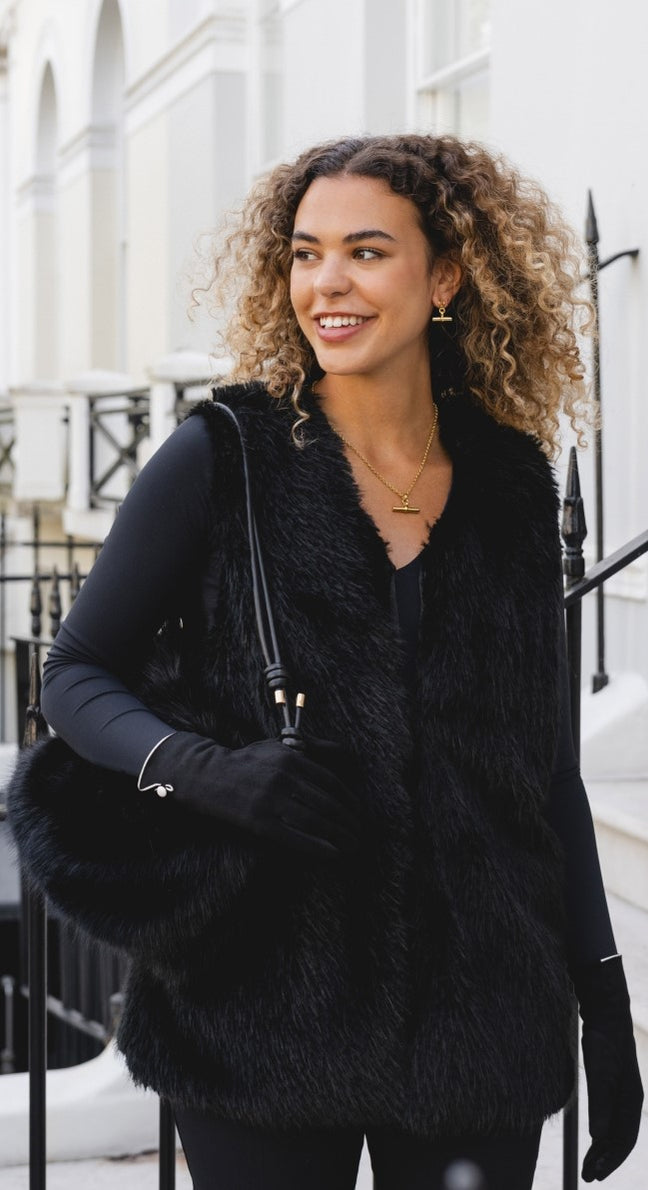 This faux fur vest long Gilet body warmer is super stylish to layer up in the cooler months.