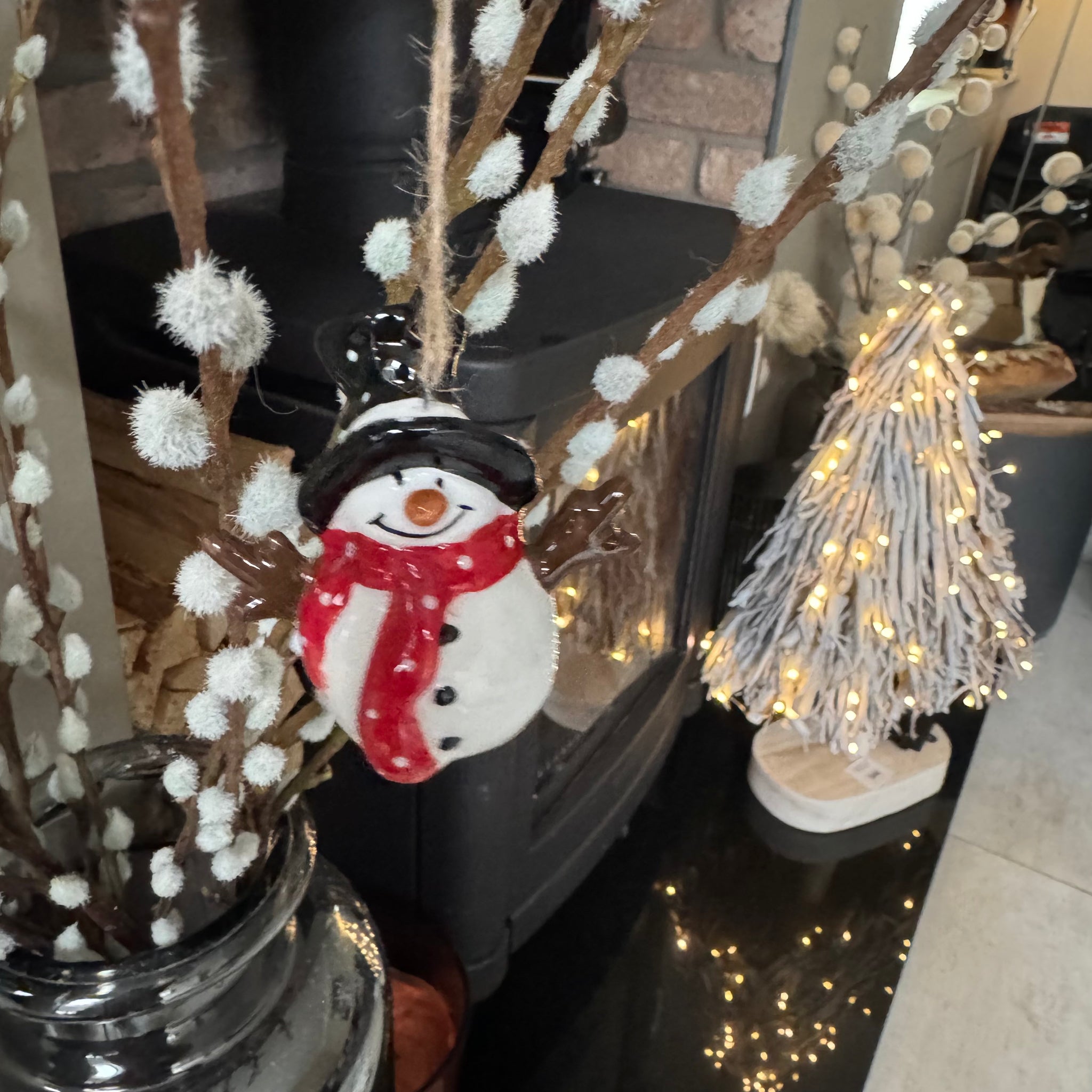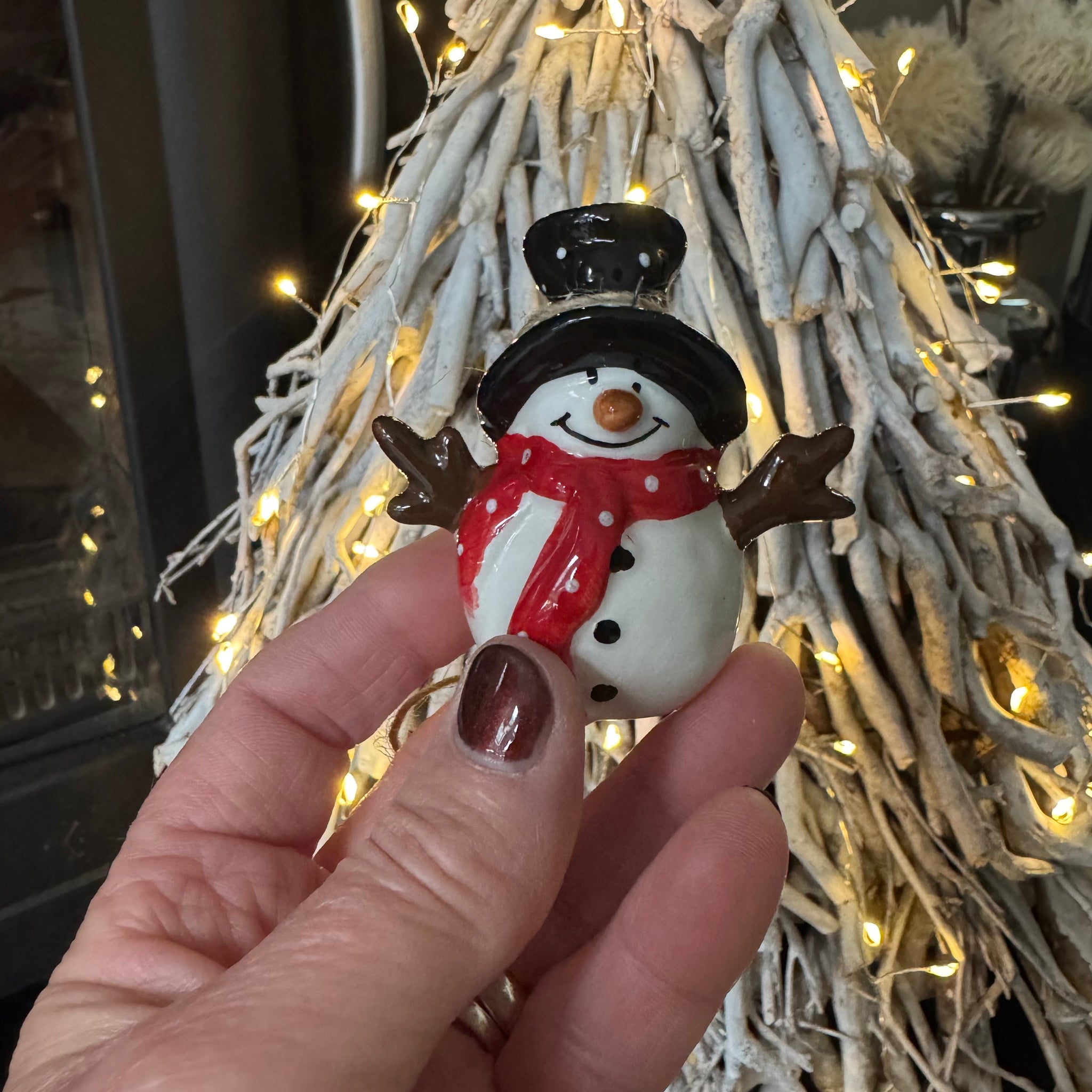 Ceramic small 6.5cm Snowman Hanging Ornament