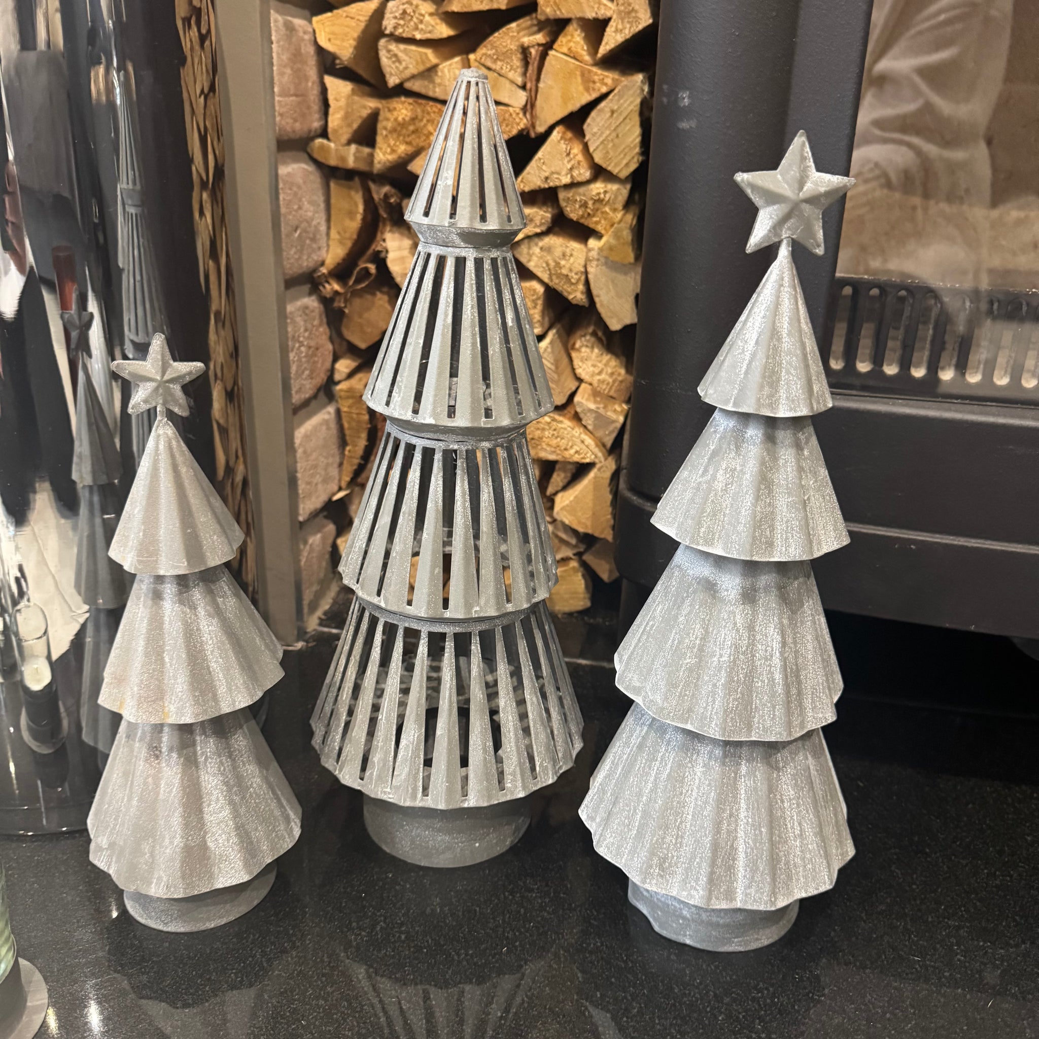 These tiered rustic metal trees are the perfect addition to any festive display