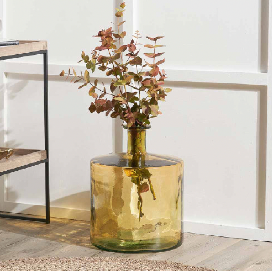 The combination of the generous proportions of this tall recycled glass bottle vase and the stunning forest green hue ensure that it makes a statement. Made in Spain by skilled artisans, this vase will look fabulous placed in the corner of your room with some decorative twigs or florals, but will also look fabulous as a stand-alone piece to add a welcome pop of colour.
