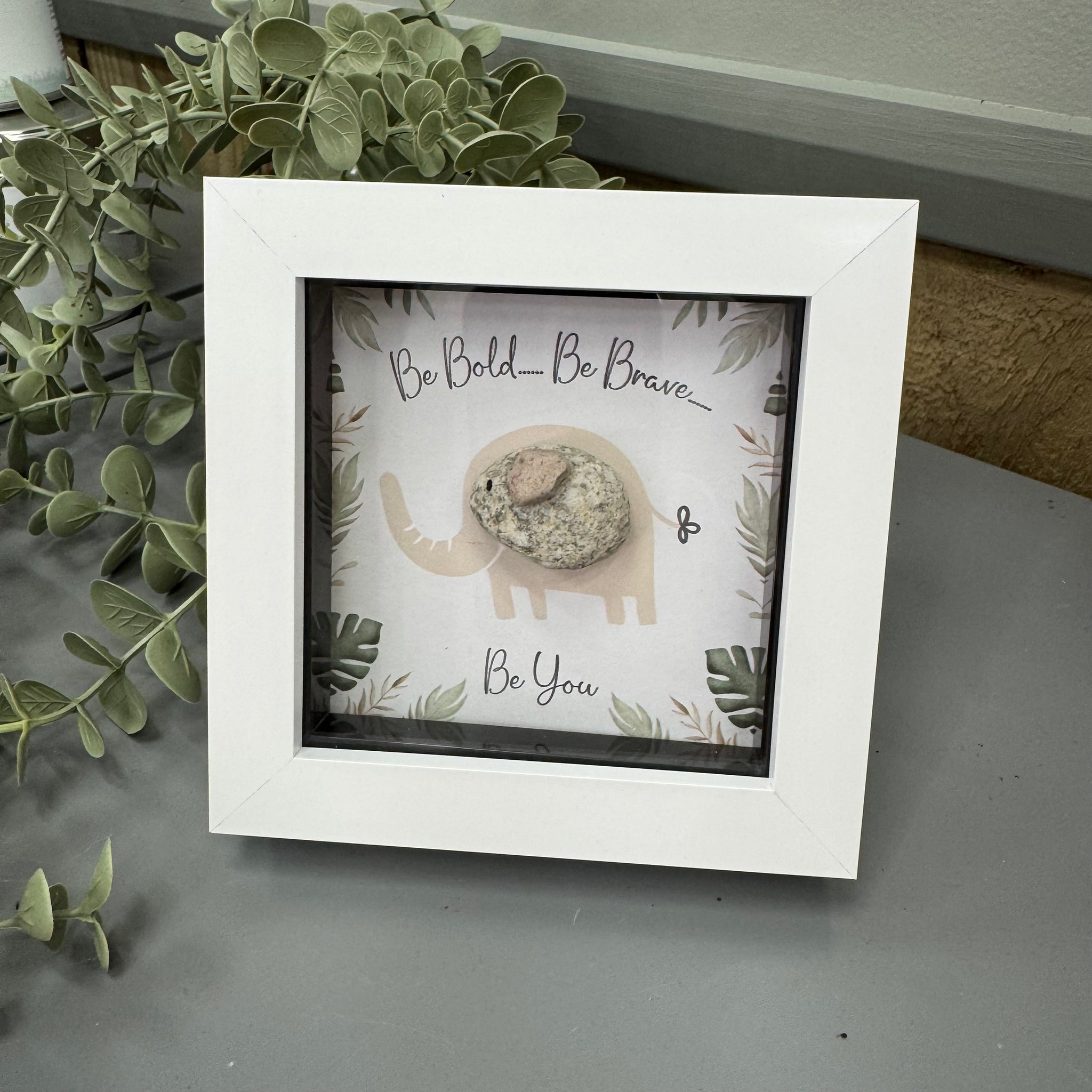 Mini Framed Pebble Art - Elephant 'Be Bold, Be Brave..'
