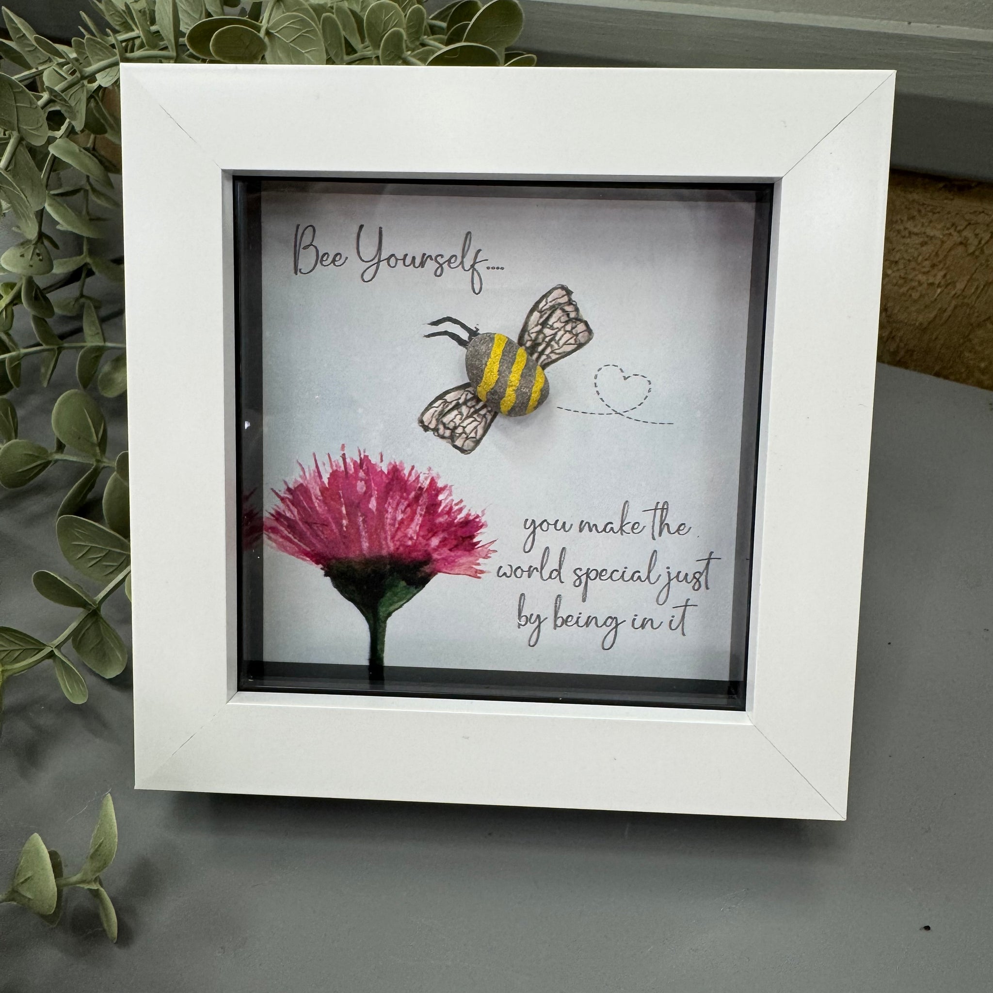 Mini Framed Pebble Art -White block square frame 12.5cm
