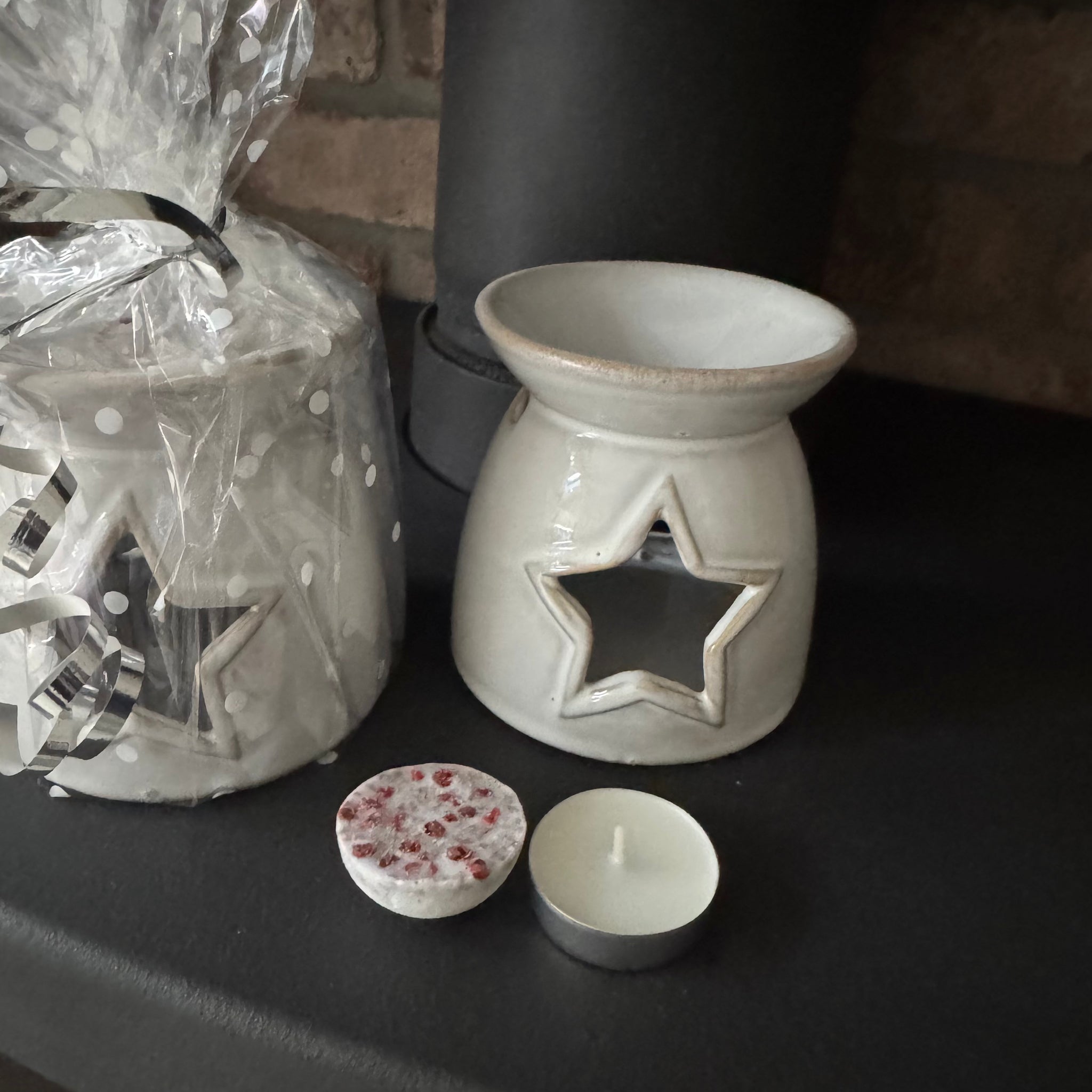 Gift Set - Ceramic Wax Burner with cut out Star & melt