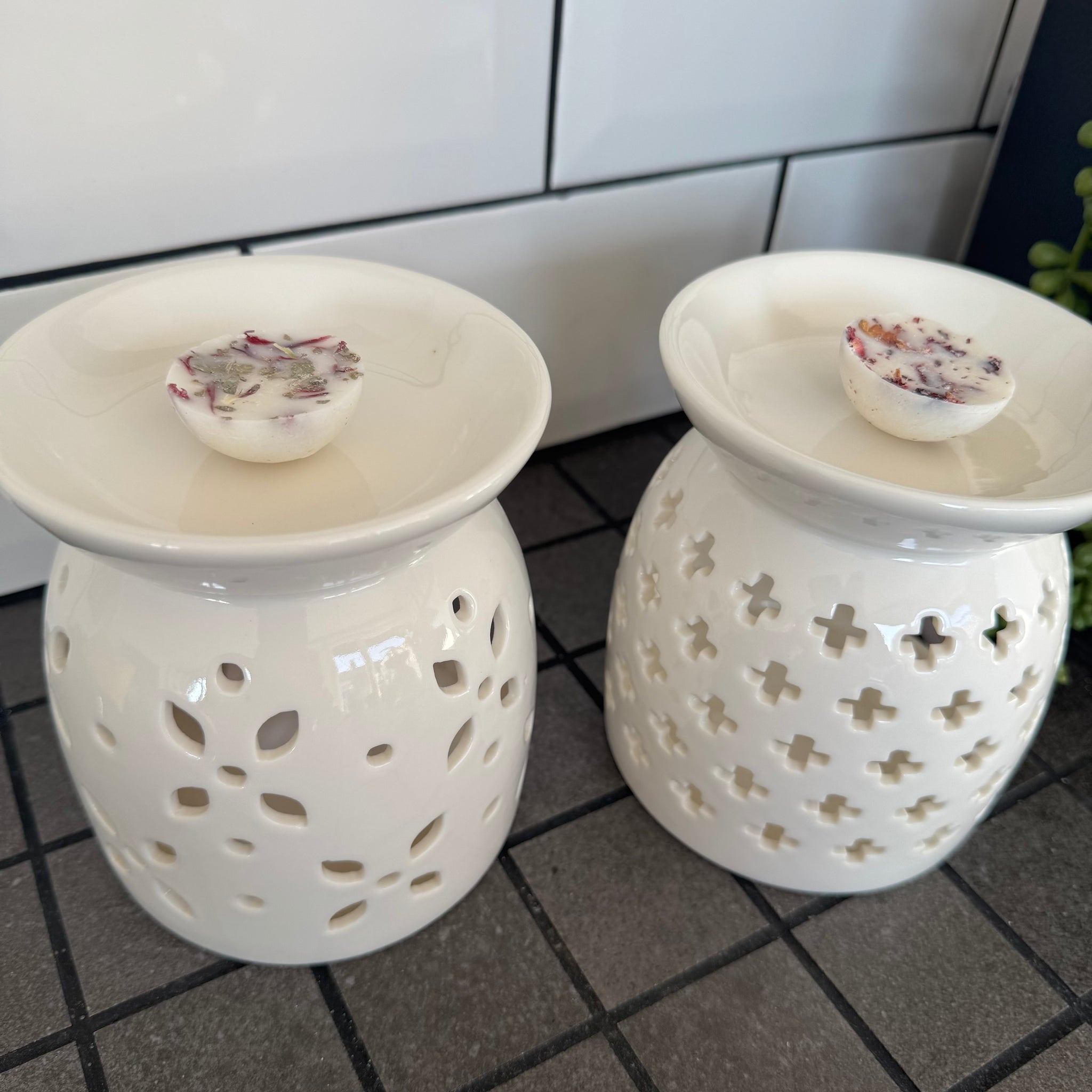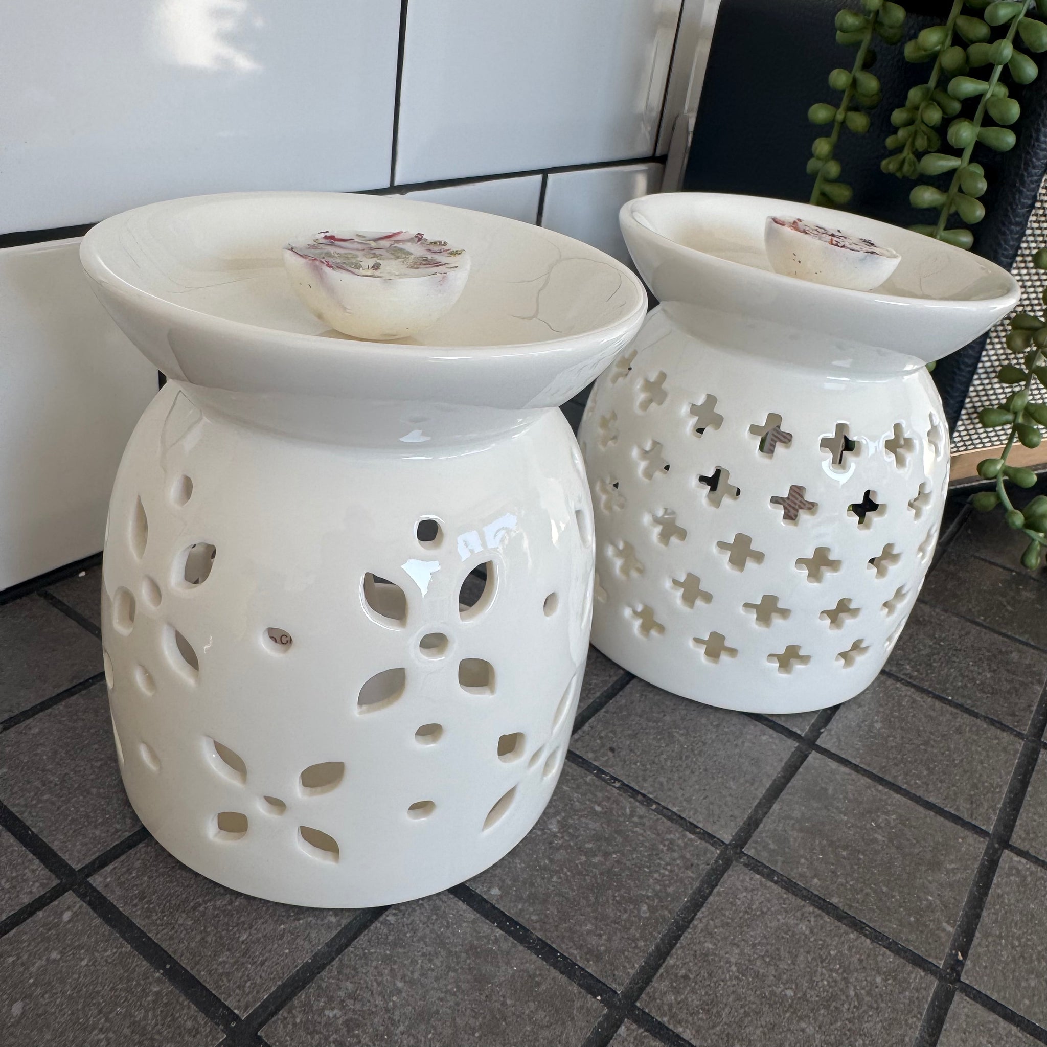 Large White Ceramic H13cm Wax Burner with Flower petal design