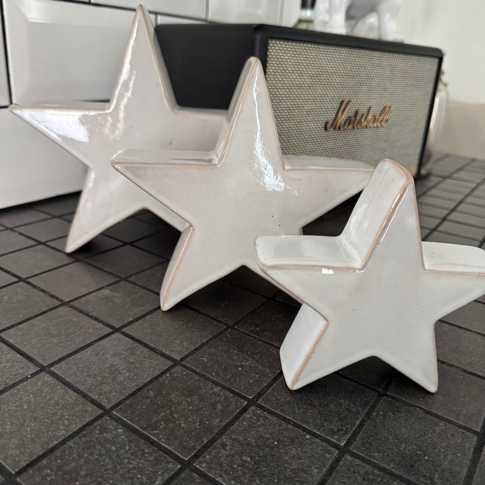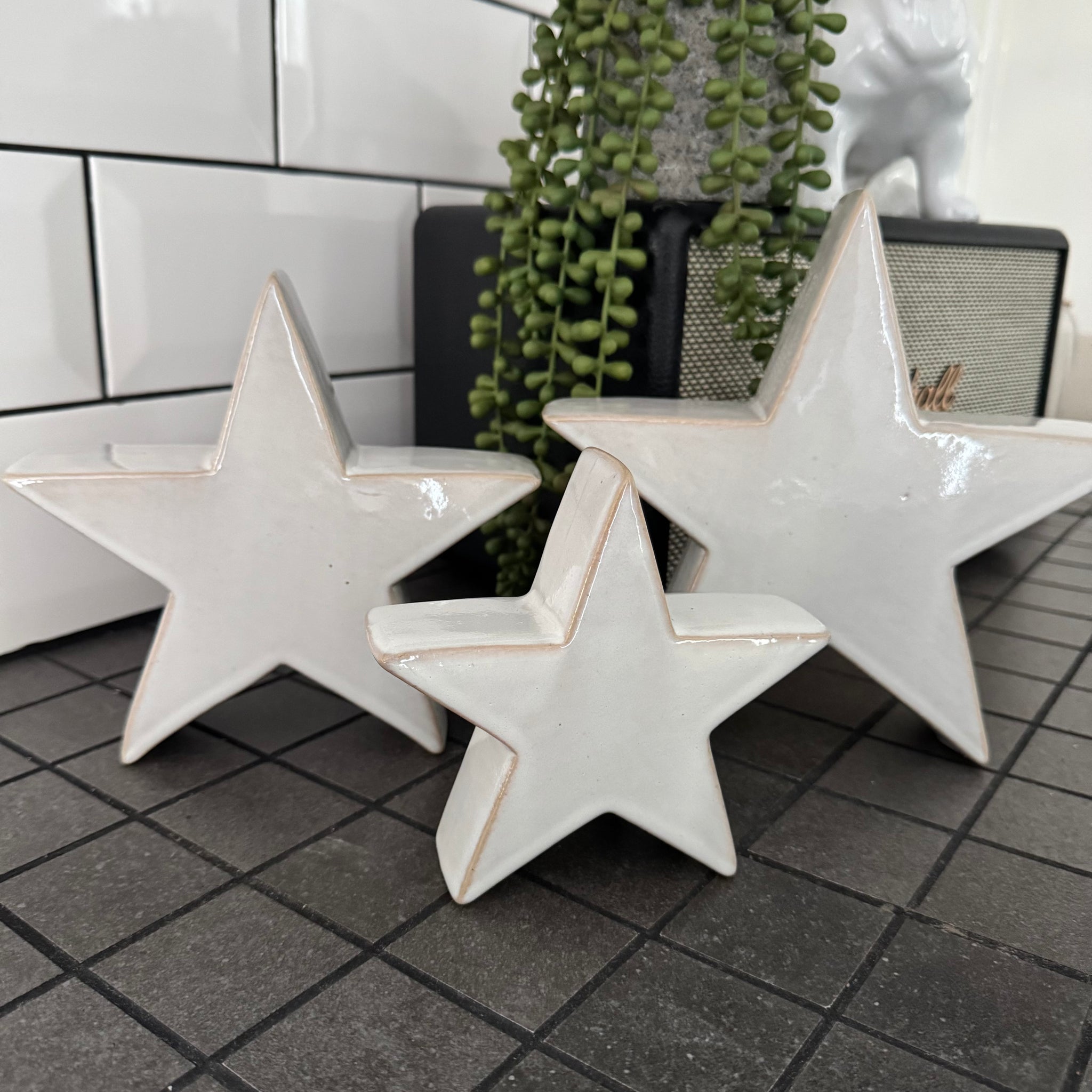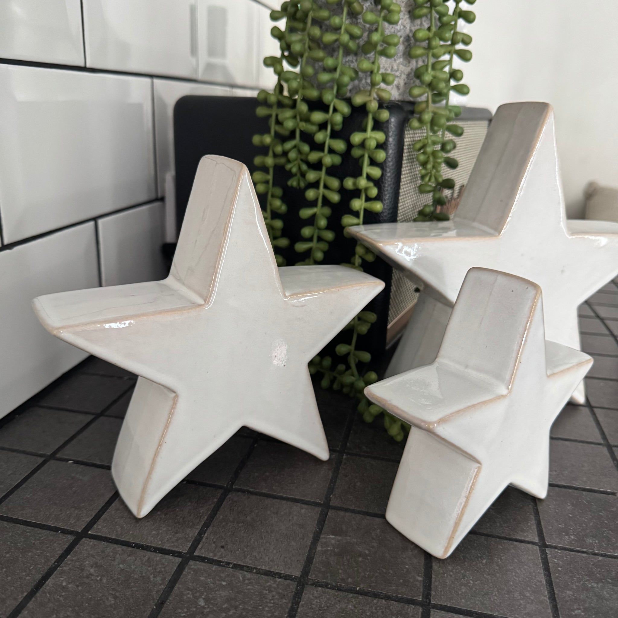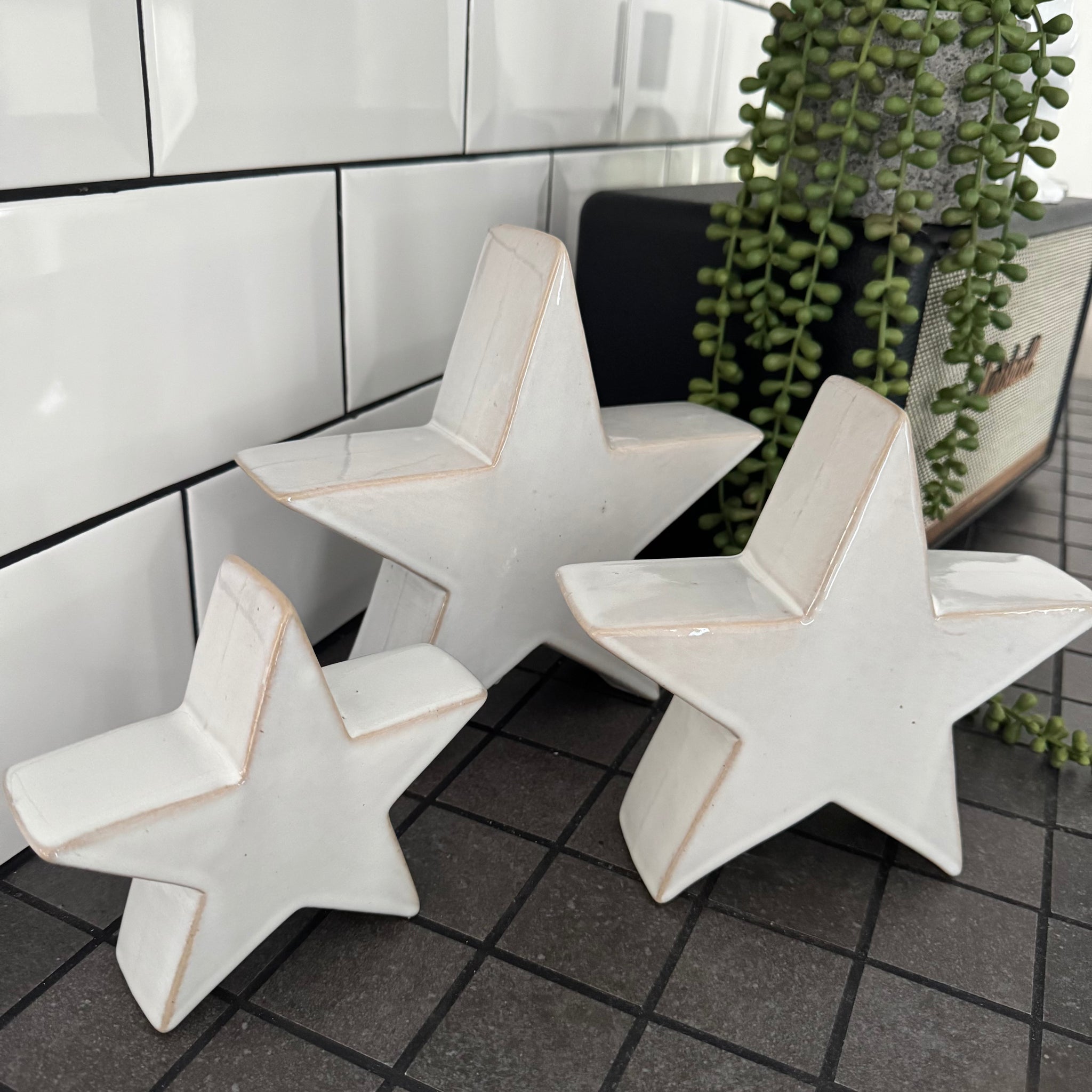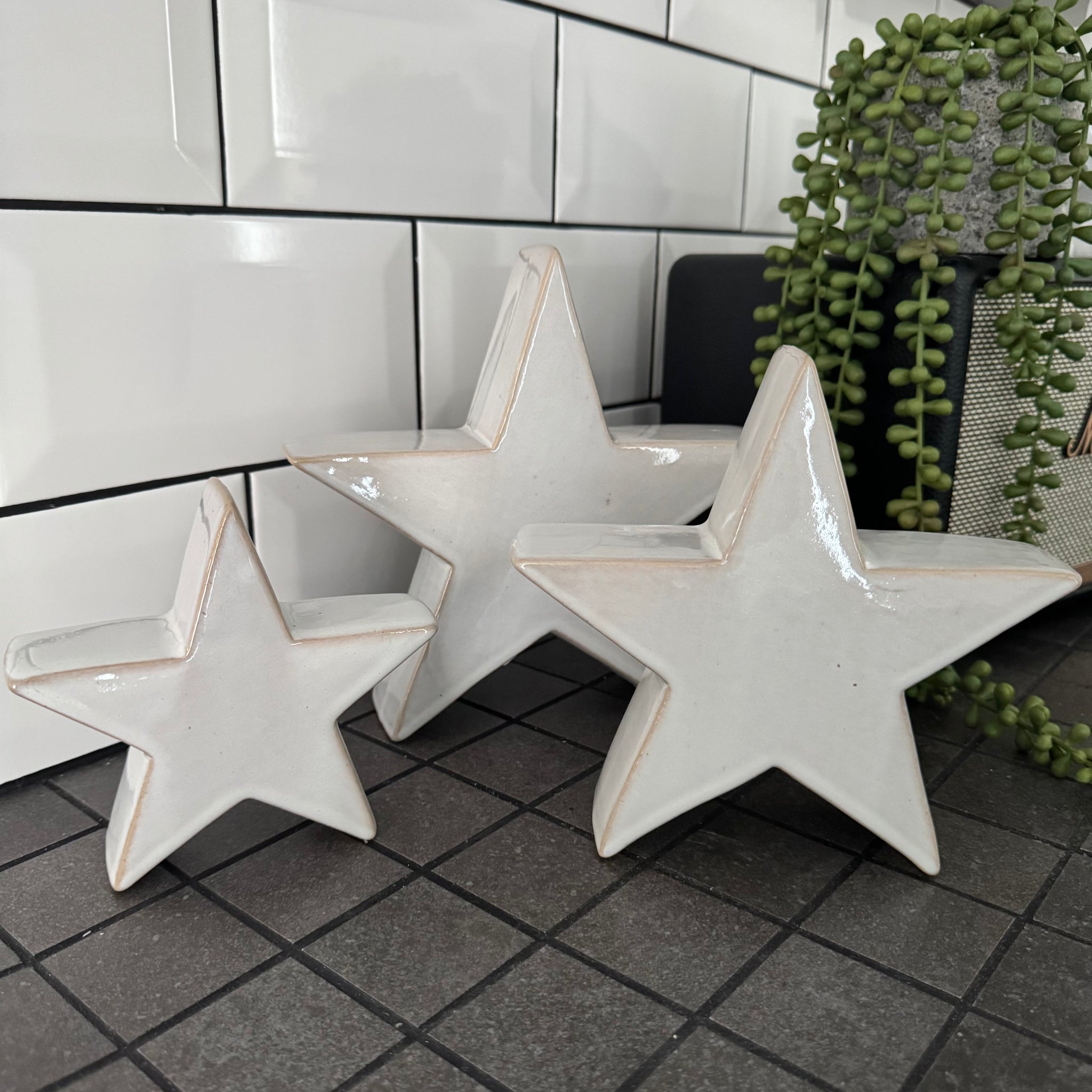 Beige textured Glazed Ceramic Standing Stars - 3 sizes