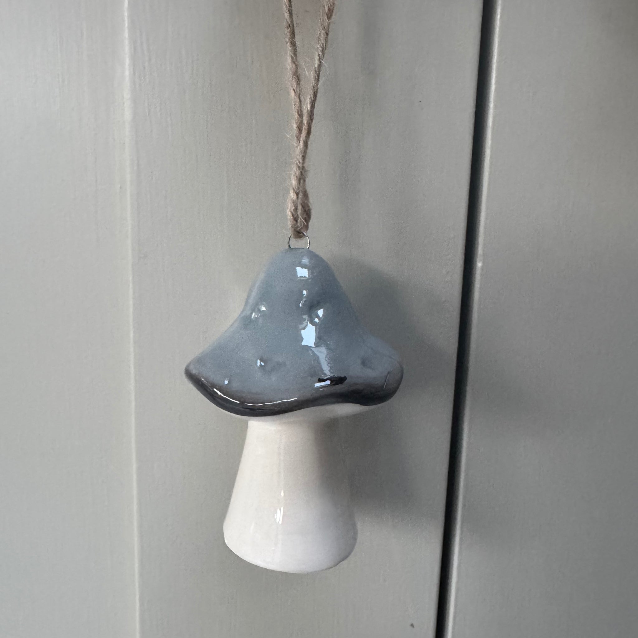 Ceramic Grey Mushroom Hanging 7cm Decoration